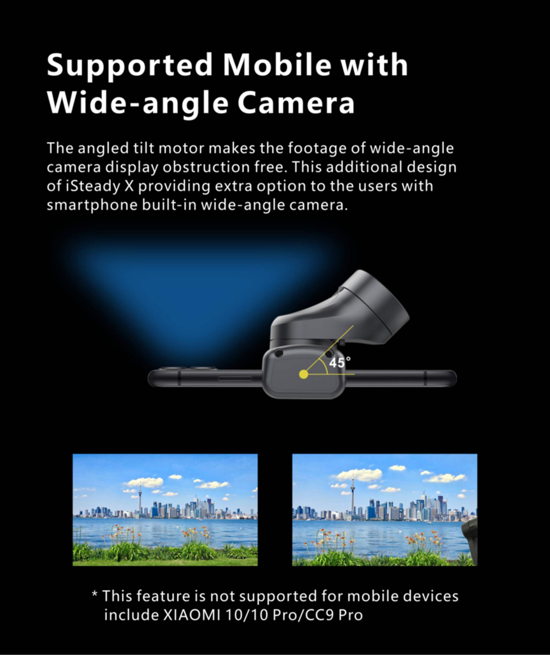 Non-orthogonal axis design: iSteady X can assist you to make best use of any ultra-wide lens smartphone
