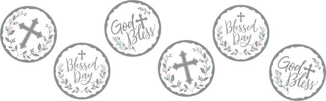 Make every occasion heavenly with the White & Silver Holy Day Confetti. The mix features gleaming silver trefoil crosses, shiny coin cutouts wishing a blessed day, and smooth white circles. Spread over tables or toss in the air to sanctify weddings, christenings, communions, and more. The foil and cardstock mix creates a holy glittering rain to celebrate sacred milestones. At three unique shapes per pack, this confetti provides variety to uplift any religious gathering.