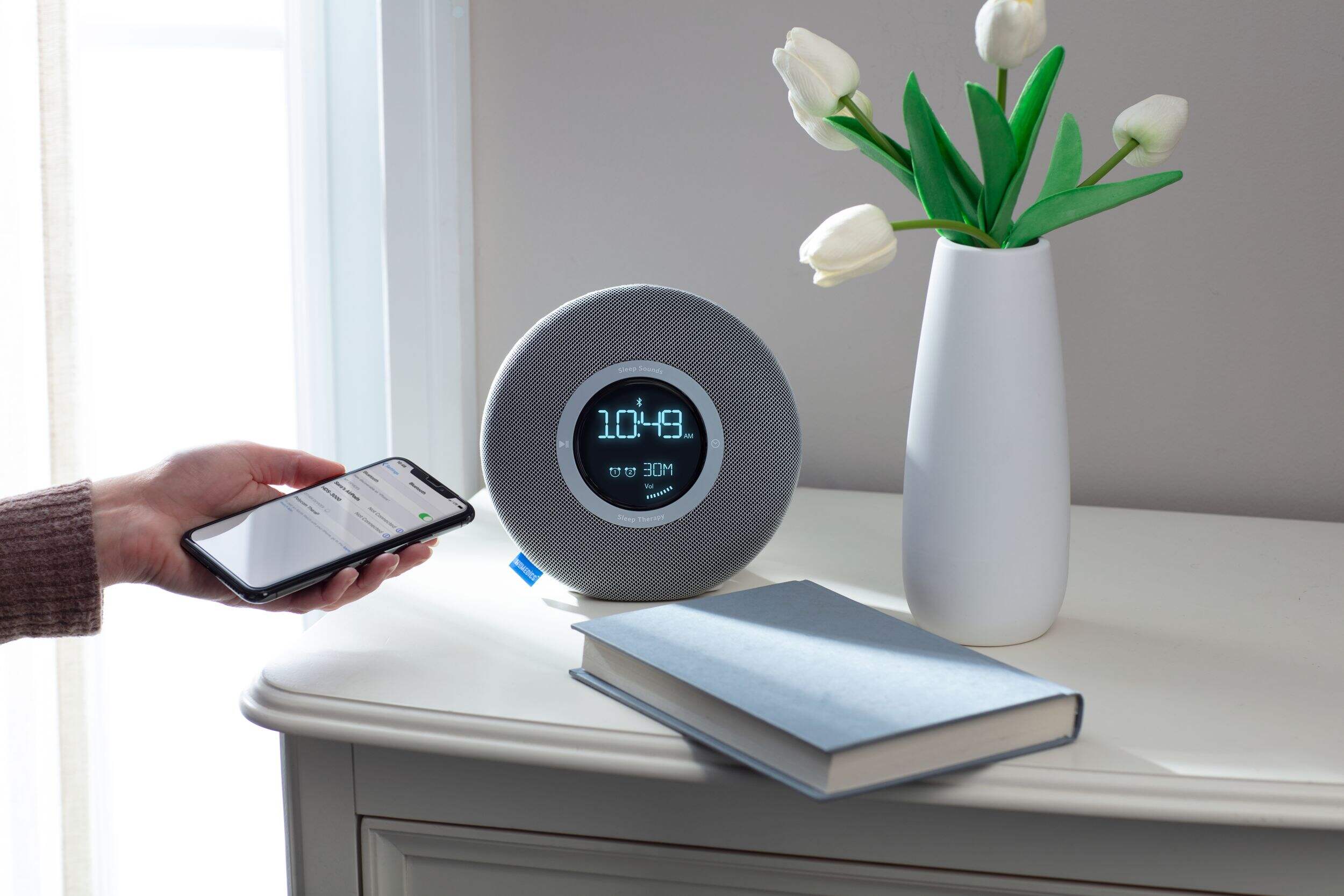 Schedules are a little busier these days while everyone is working and learning from home. Rediscover how it feels to be truly rested. The HoMedics® Deep Sleep® Revitalize Engineered Sleep Sound Alarm Clock provides white, brown, pink or gray noise and sleep therapy programs that mask distractions, allowing for deeply restful sleep. Dual high-performance speakers provide room-filling sound, and even let you use your own smartphone to stream sounds via Bluetooth®. Choose from 8 built-in relaxation and nature sounds, as well as 4 adjustable white noise tones. Use the 4 meditation sounds (mask, calm, relax, soothe) to induce the ultimate feeling of relaxation. The auto-off timer can be set for 30, 60, or 90 minutes, so you can fall asleep relaxed. Choose from Campfire, Ocean, Brook, Wind Chimes, Thunderstorm, Summer Night, Gentle Rain, or Everglades, and enjoy your most restful sleep yet.