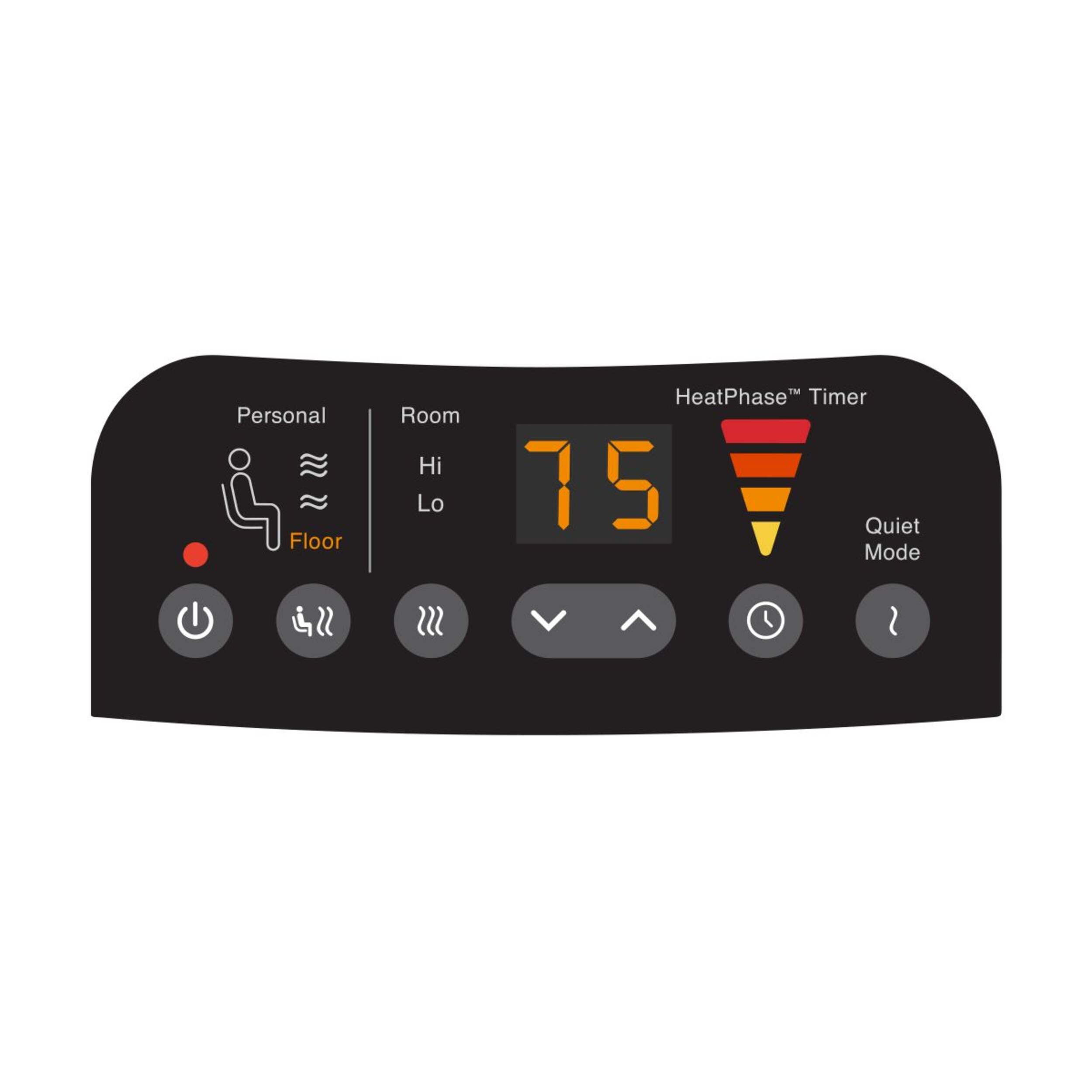 HeatPhase™ Timer has a 2-hour auto-off feature that gradually transitions the room temperature from warmer to cooler