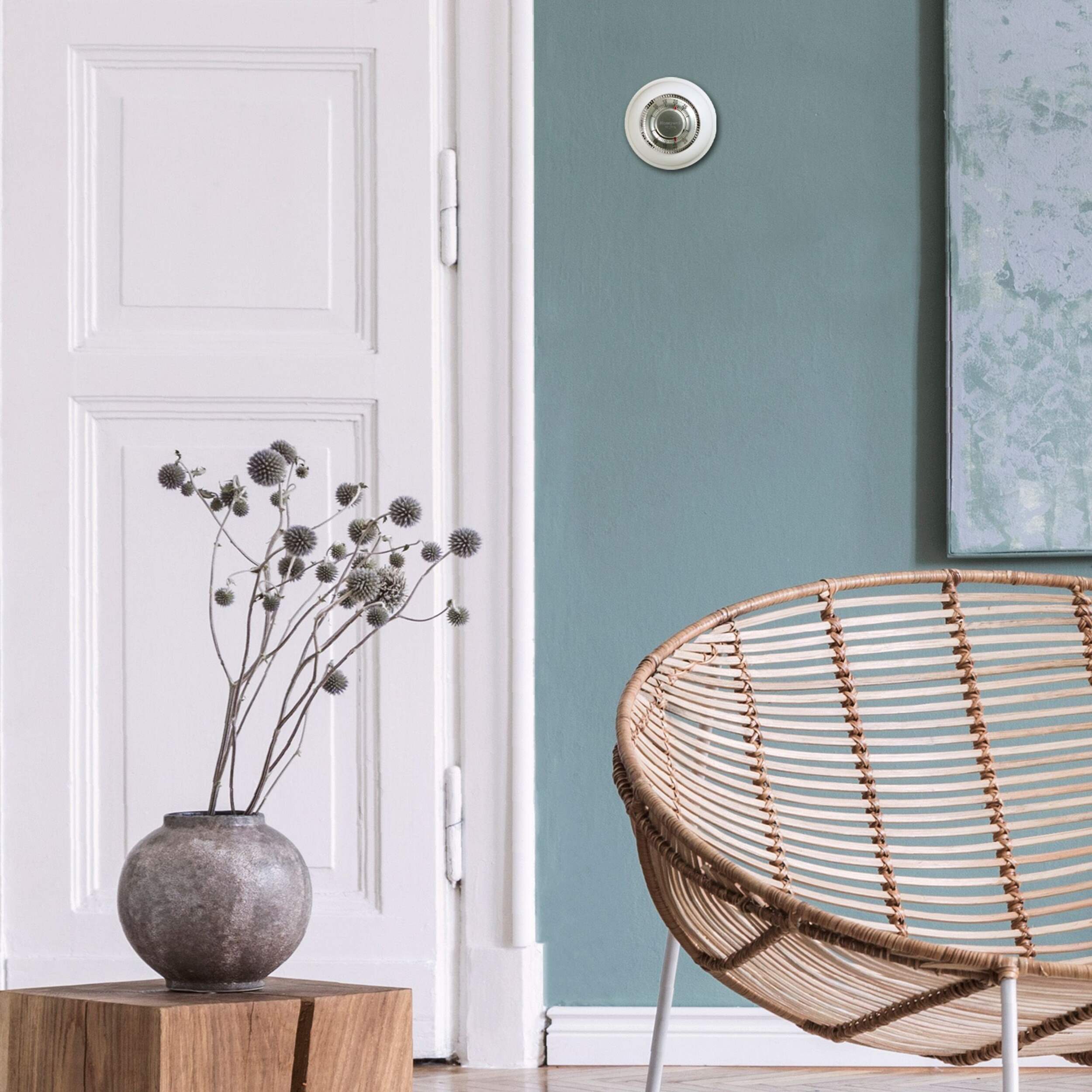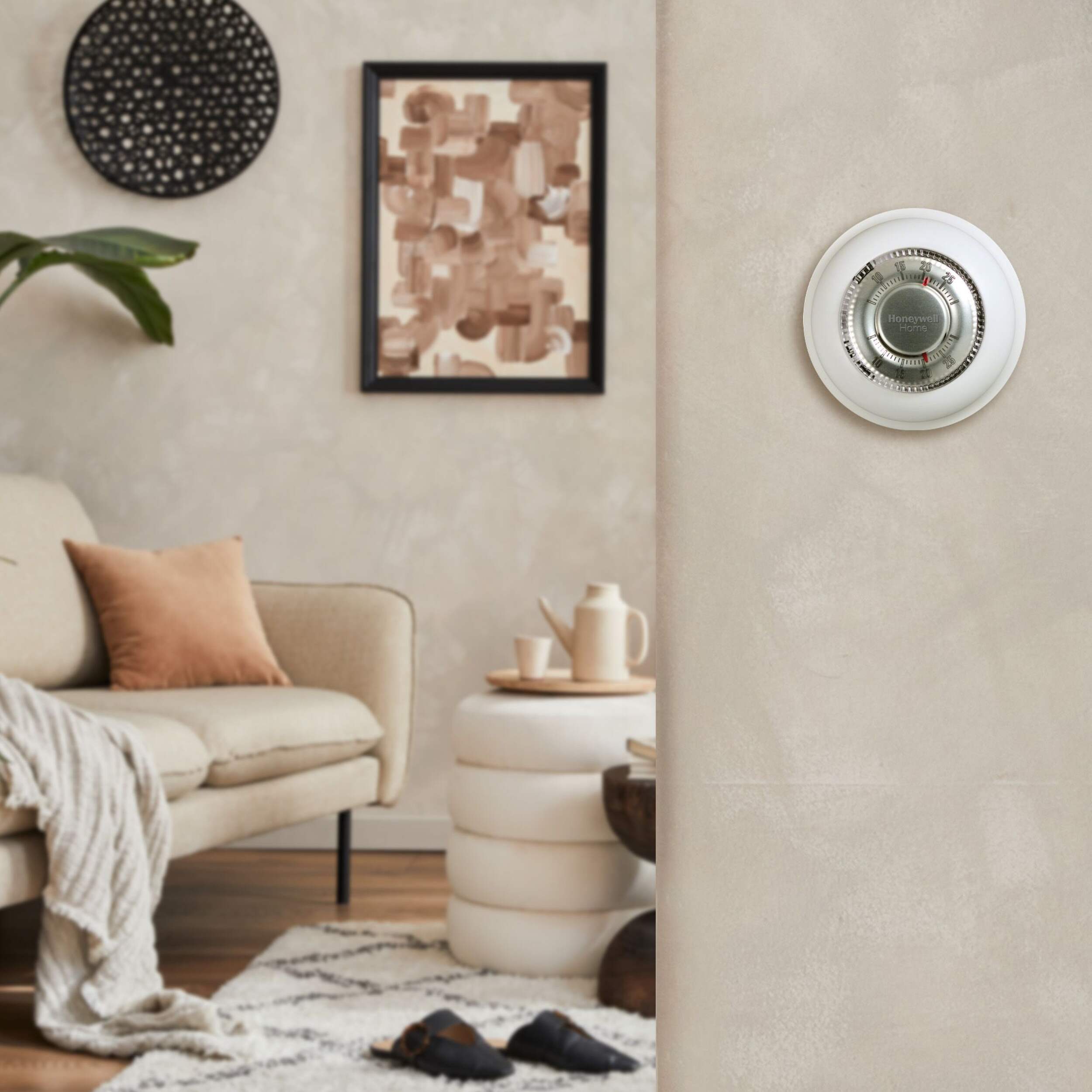 The Honeywell Home Round® Non-Programmable Thermostat features a familiar circular design and a simple twist action, making it quick and easy to set your ideal temperature. Its classic design blends seamlessly into any home, while the reliable, easy-to-read scale ensures precise temperature adjustments. The model includes large, raised markings and provides an audible click every 2-degree change, allowing you to both see and hear the adjustment with ease.
