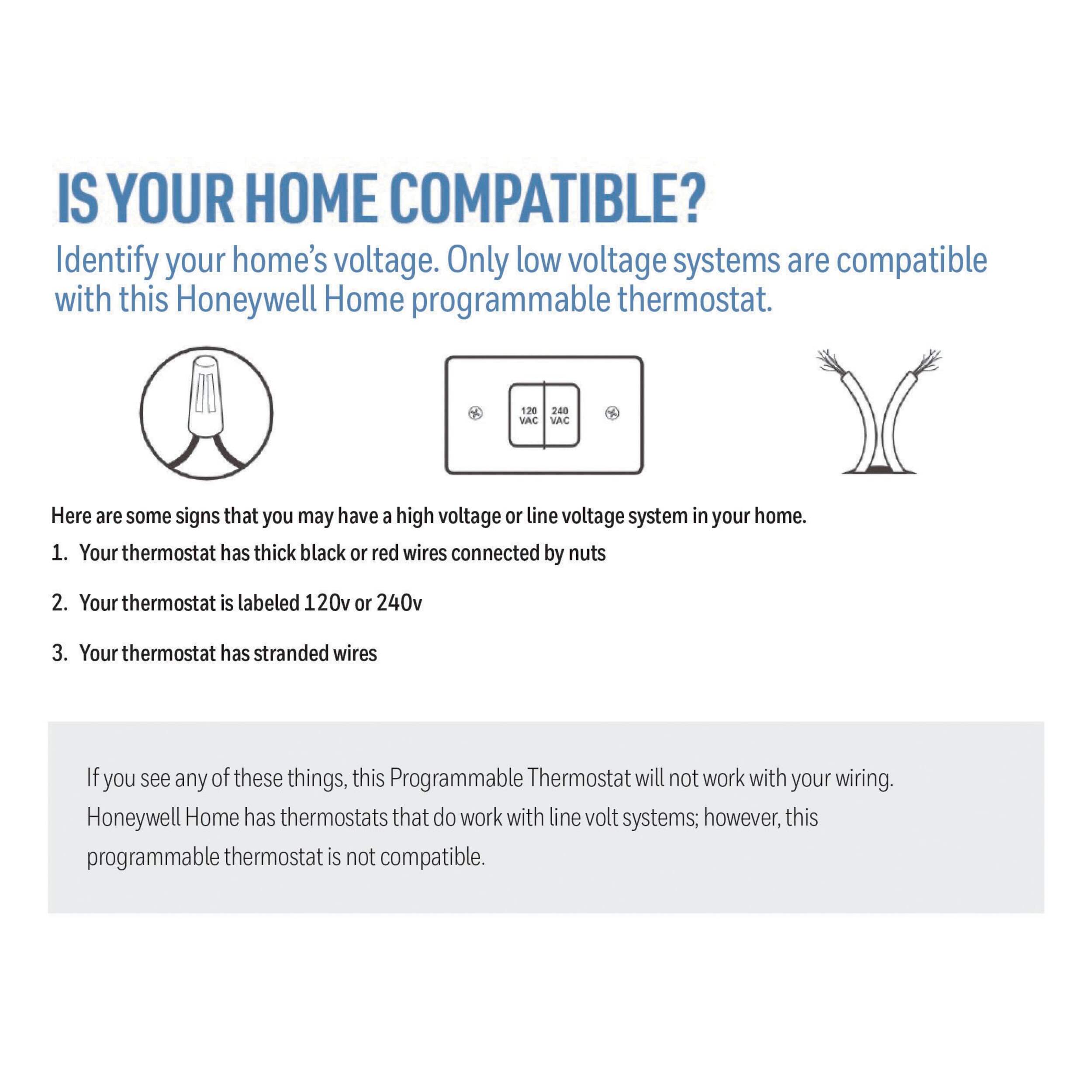 COMPATIBLE WITH: Forced air (gas, oil or electric), hot water and steam, and heat pumps with electric backup. Does NOT work with electric baseboard heat (120-240V)