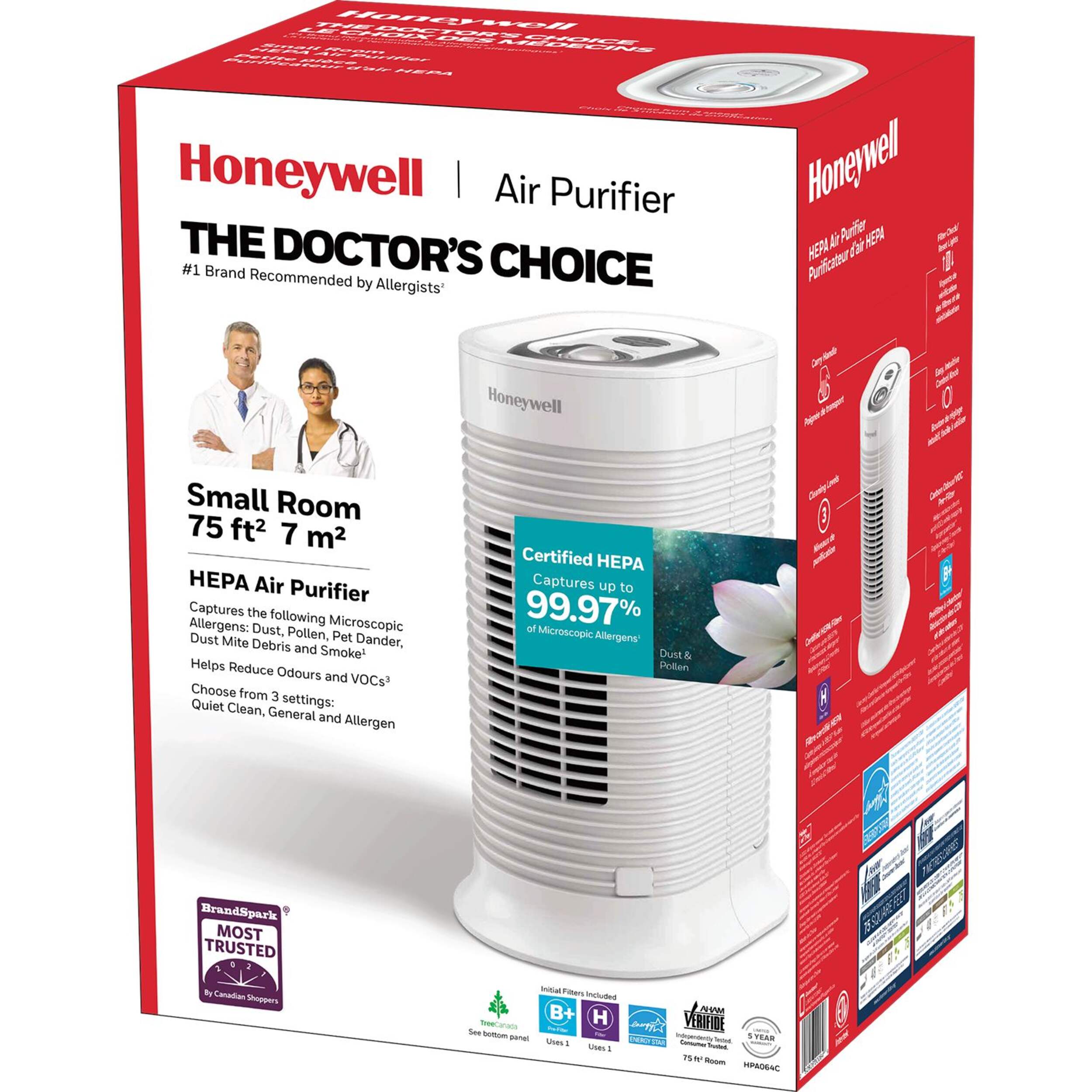 The Honeywell HPA064C True HEPA Filter Air Purifier helps remove harmful allergens and particles so you can come home to cleaner air. From the #1 brand of portable air purifiers recommended by allergists, this air purifier works hard with a layer of activated carbon in the pre-filter that captures common household odours. This compact Honeywell tower is Energy Star certified, so you can feel comfortable letting it run all day.