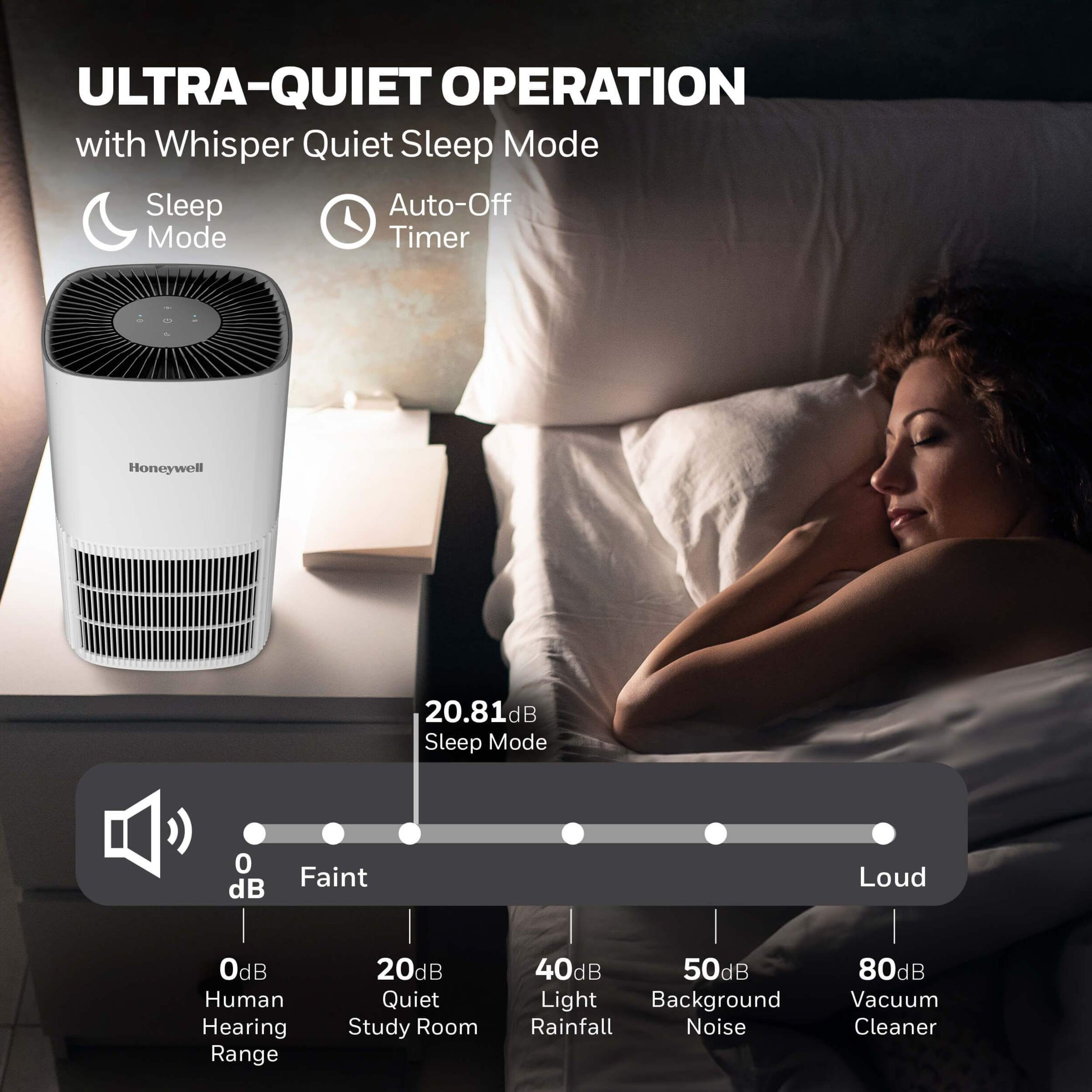 Enhance the air quality in your home with the Honeywell HPA120WC True HEPA Tabletop Air Purifier. Designed for small spaces like bedrooms and offices, this purifier effectively removes allergens and odours, ensuring a cleaner and fresher environment. Its sleek, compact design fits seamlessly into any room, providing a quiet and restful experience with its sleep mode feature.