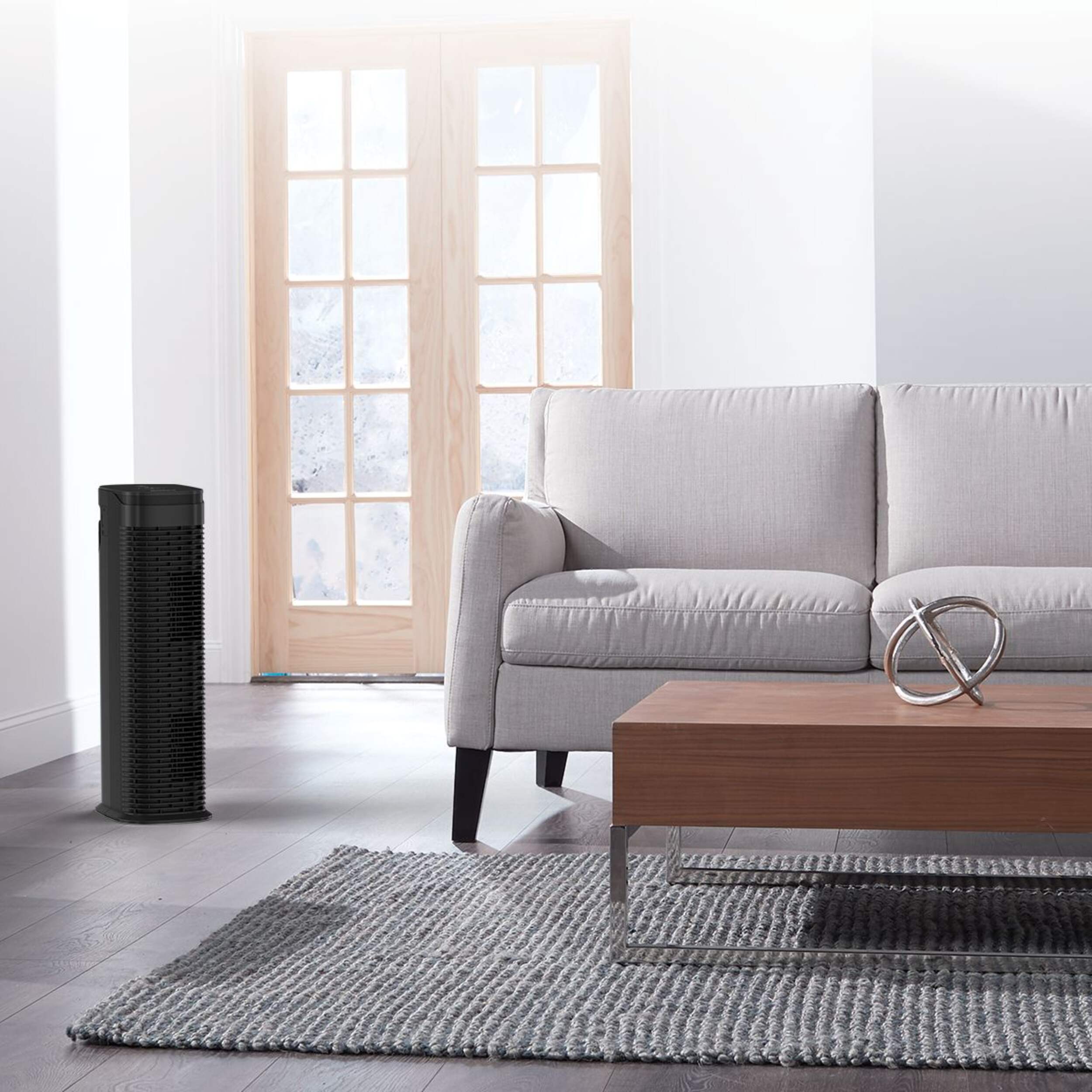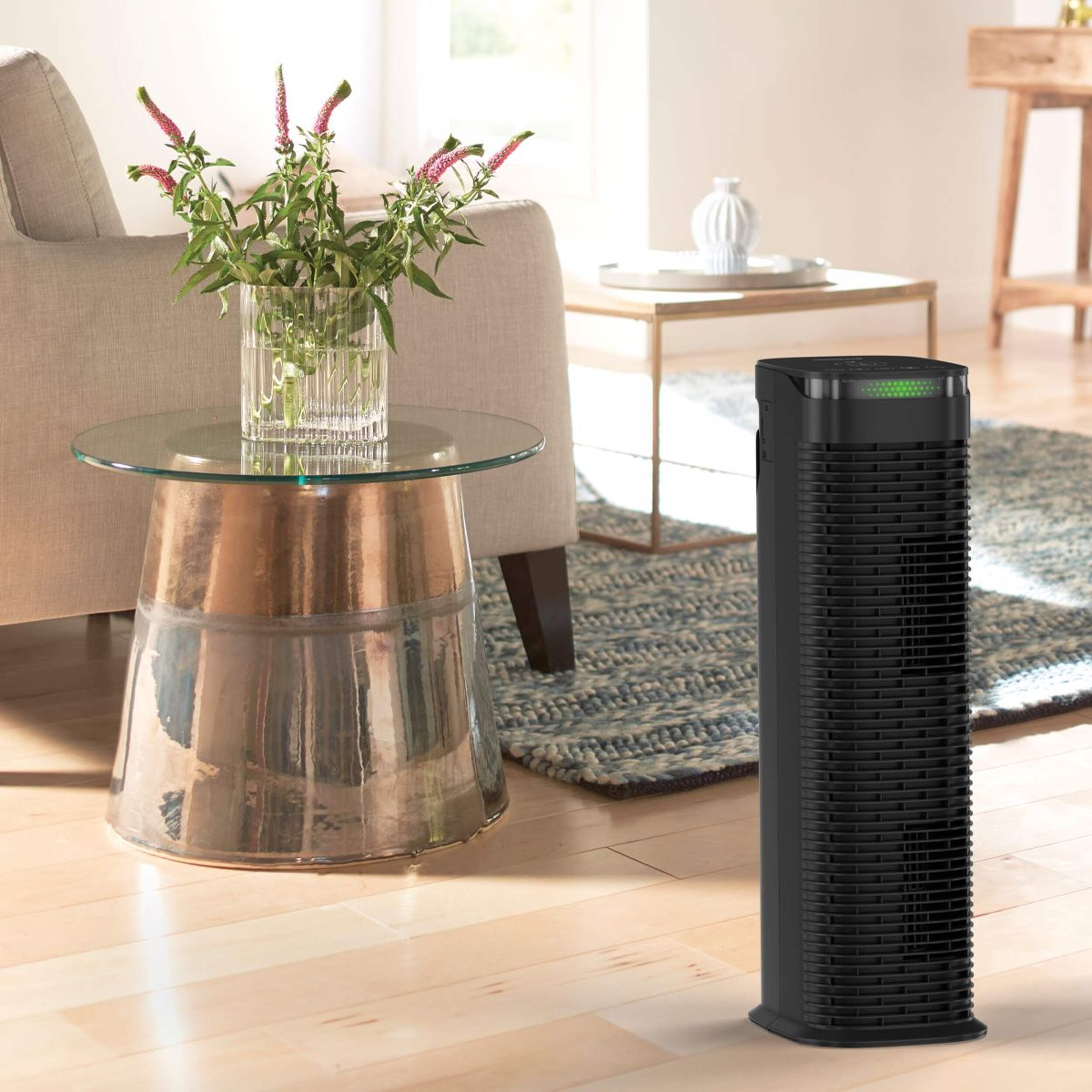 Clear the air with help from the Honeywell InSight™ Series HEPA Full Size Tall Tower Air Purifier. This air purifier is designed for large rooms of up to 200 sq. ft. It features an Intelligent Air Quality Sensor that continuously monitors and provides real-time feedback on indoor air quality. The Honeywell InSight™ HEPA Tower Air Purifier uses Certified HEPA filters to help capture up to 99.97% of microscopic allergens and particles. As fashionable as it is functional, this sleek air purifier is a Good Design Award winner.