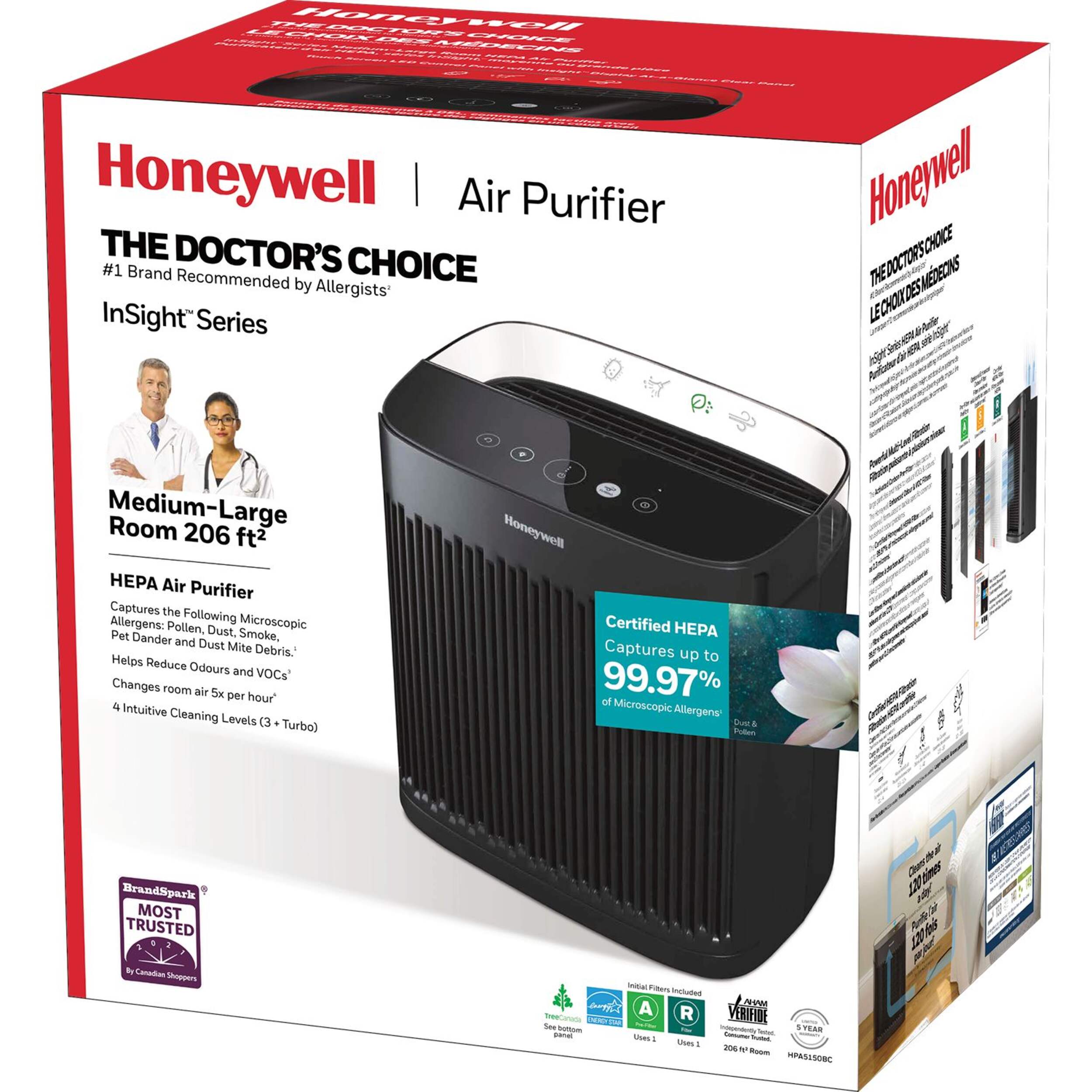 Honeywell is the #1 Choice of HEPA air purifier brands by Doctors in Canada. Based on a 2022 the BrandSpark® survey of 104 physicians currently practicing in Canada