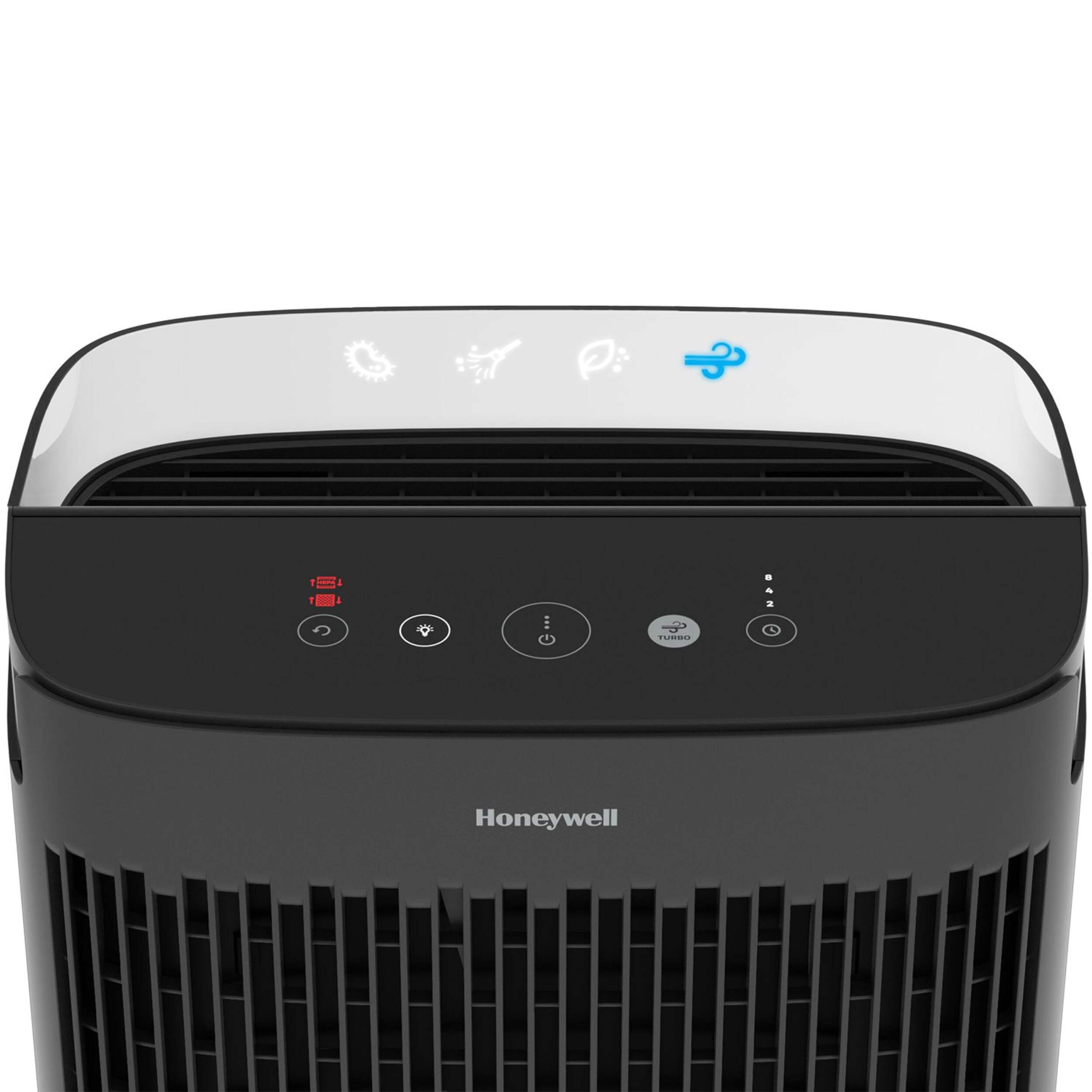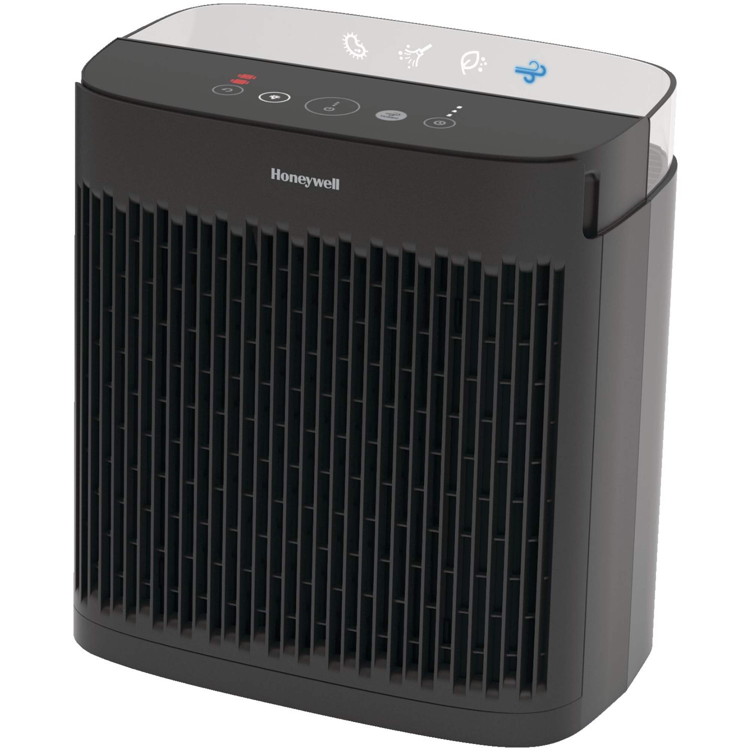 Easy touch screen LED control panel with 3 air cleaning levels plus Turbo Clean setting and filter replacement reminder