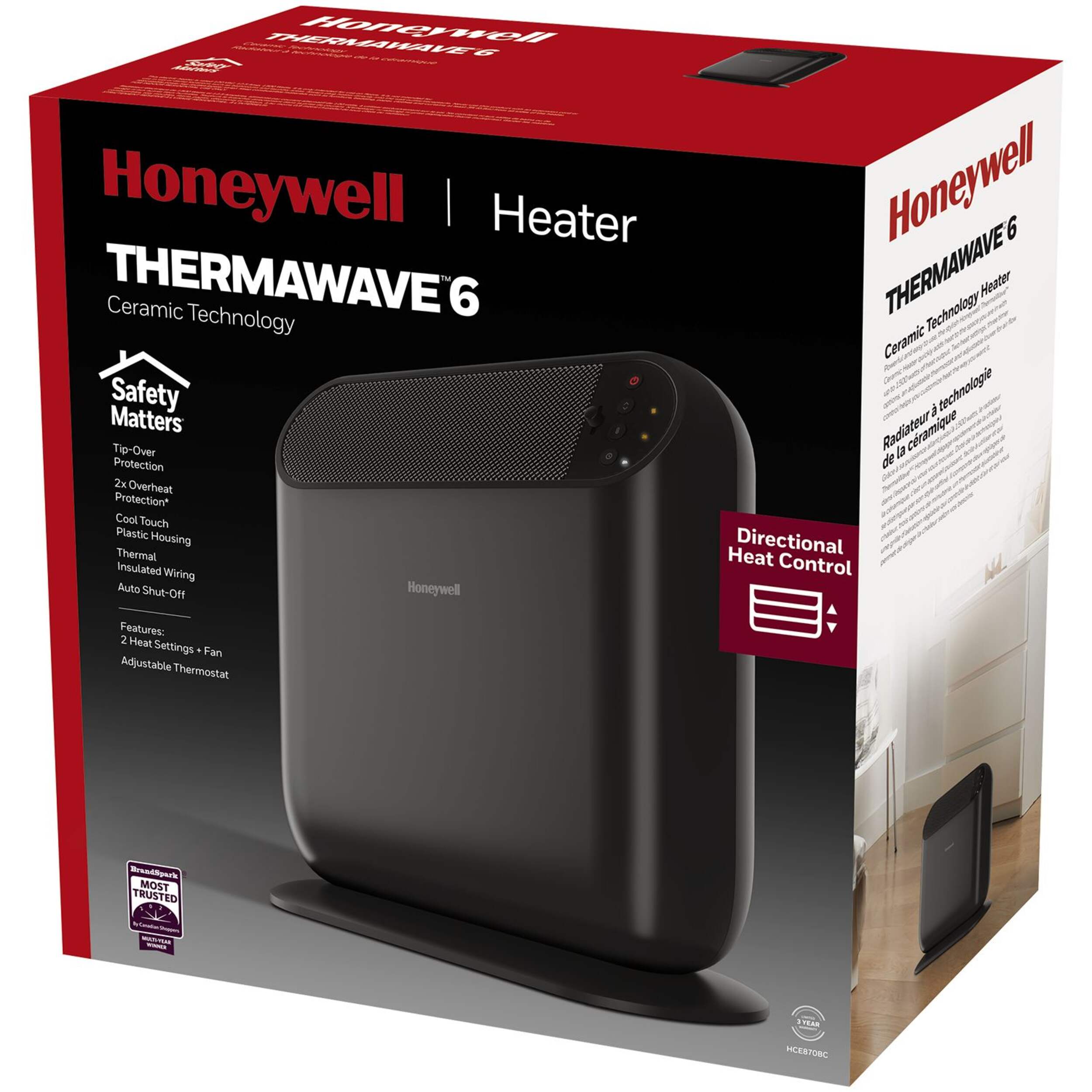Direct heat to exactly where you need it with the Honeywell ThermaWave 6 Space Heater. Use it in any room of your home for efficient and comfortable heating that's easy on the wallet. It's ideal for providing temporary heating wherever you need it, such as your office, bedroom, or living room. Equipped with a programmable thermostat, it features two heat settings (high and low) as well as a fan-only option. This compact space heater offers directional heat control with adjustable louvers, and a non-tip base.
