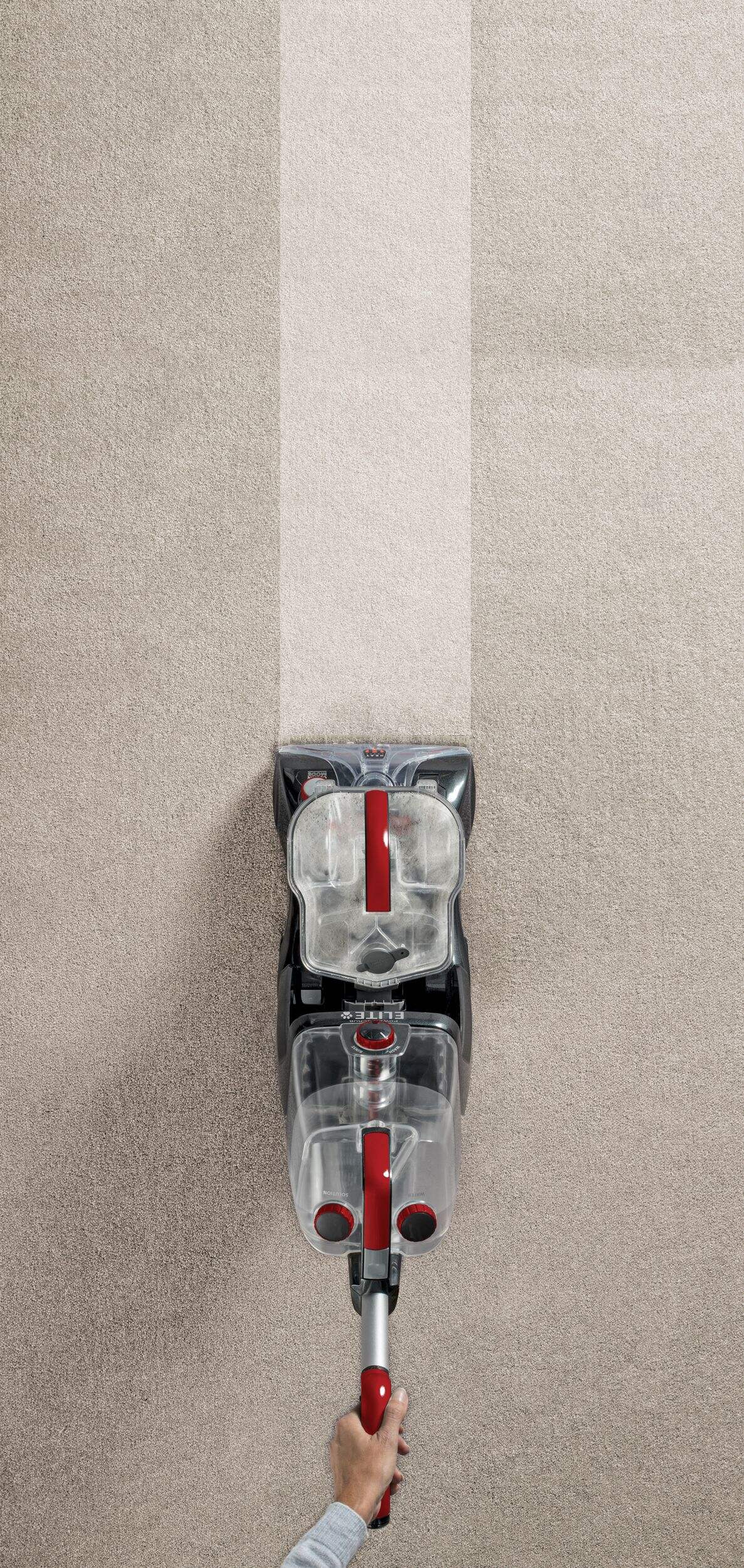 Hoover® Power Scrub Quick Dry Pet Carpet & Upholstery Cleaner includes Exclusive SpinScrub® 360 degree Technology cleans surrounding carpet fibers