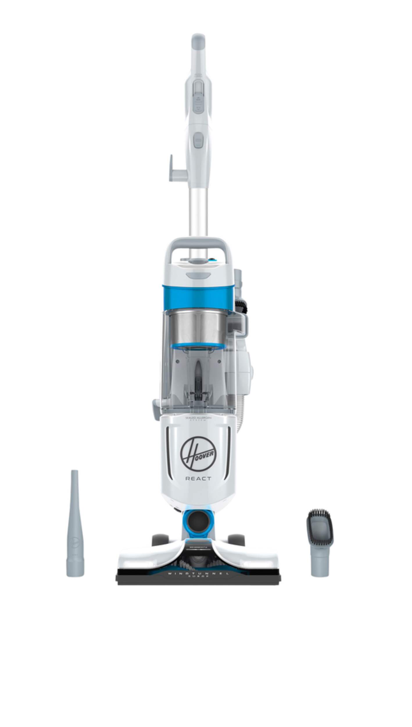 Hoover® REACT™ Bagless Upright Vacuum combines the power and suction you trust, with intelligent cleaning technologies to deliver The Ultimate Clean.* Automatically. FloorSense™Technology utilizes micro-sensors that detect changing floor types and automatically adjusts brush roll speed for the best results on any floor type. The Hoover® REACT™ is a full-size lightweight vacuum with an easy to maneuver design and is complimented with the tools you need for a whole home clean. Compatibility with the Hoover App allows you to customize your cleaning experience, access tips and tricks and maintain your vacuum for optimized performance. Additionally, the new WindTunnel Surge™ and Multi-Cyclonic Technology for No Loss of Suction† captures dirt, dust and pet hair. The Hoover® REACT™ was created with active families in mind – now you can clean easier, so you can get back to what matters most. († Per IEC 60312-1 1st Edition, Clause 5.9. Test results within accepted variability tolerance of 5%).