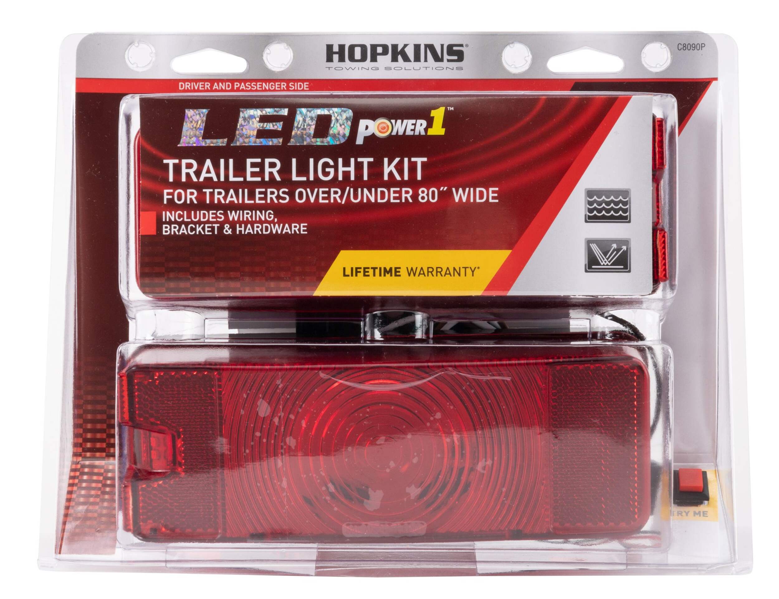The Power1 LED low-profile trailer lighting kit is designed to conform to applicable US FMVSS108 and Canadian CMVSS safety standards for all vehicles and trailers over and under 80" wide. The trailer light kit is a great LED alternative to incandescent lights - the powerful series utilizes special lens optics to simulate the look of traditional incandescent lights while delivering the long life and maintenance free reliability of LED lights. The life of an LED trailer light far exceeds traditional incandescent trailer lights. The low amp draw and durability of an LED provides a maintenance-free light and the quicker illumination keeps your safer while on the road. Easily mounts on surface of trailers with 2" or 4" mounting centers. LED trailer light kit includes 2 stop/tail/turn lights, a 20 ft. 4-way wire harness, corrosion resistant license plate bracket, mounting hardware and trilingual instructions- everything needed for easy installation.