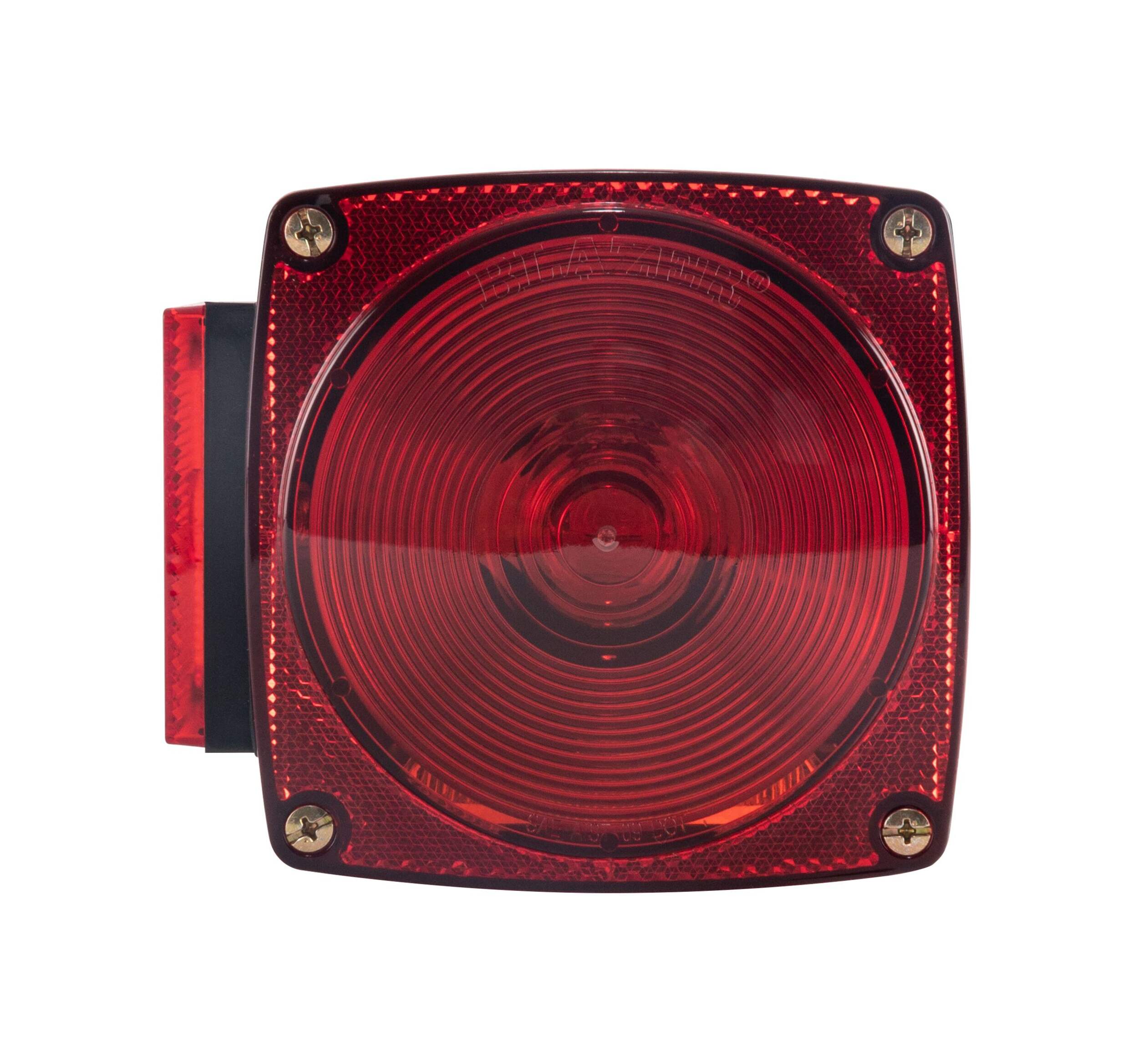 The 7-function left side combination stop/tail/turn light is designed to conform to applicable US FMVSS108 and Canadian CMVSS safety standards for all vehicles and trailers under 80" wide. This light provides 7 legal functions to include stop, tail, turn, rear and side reflex, side marker and license illumination. Easily replace lens and bulb for convenient maintenance. Stud mounts on industry standard 2" centers.