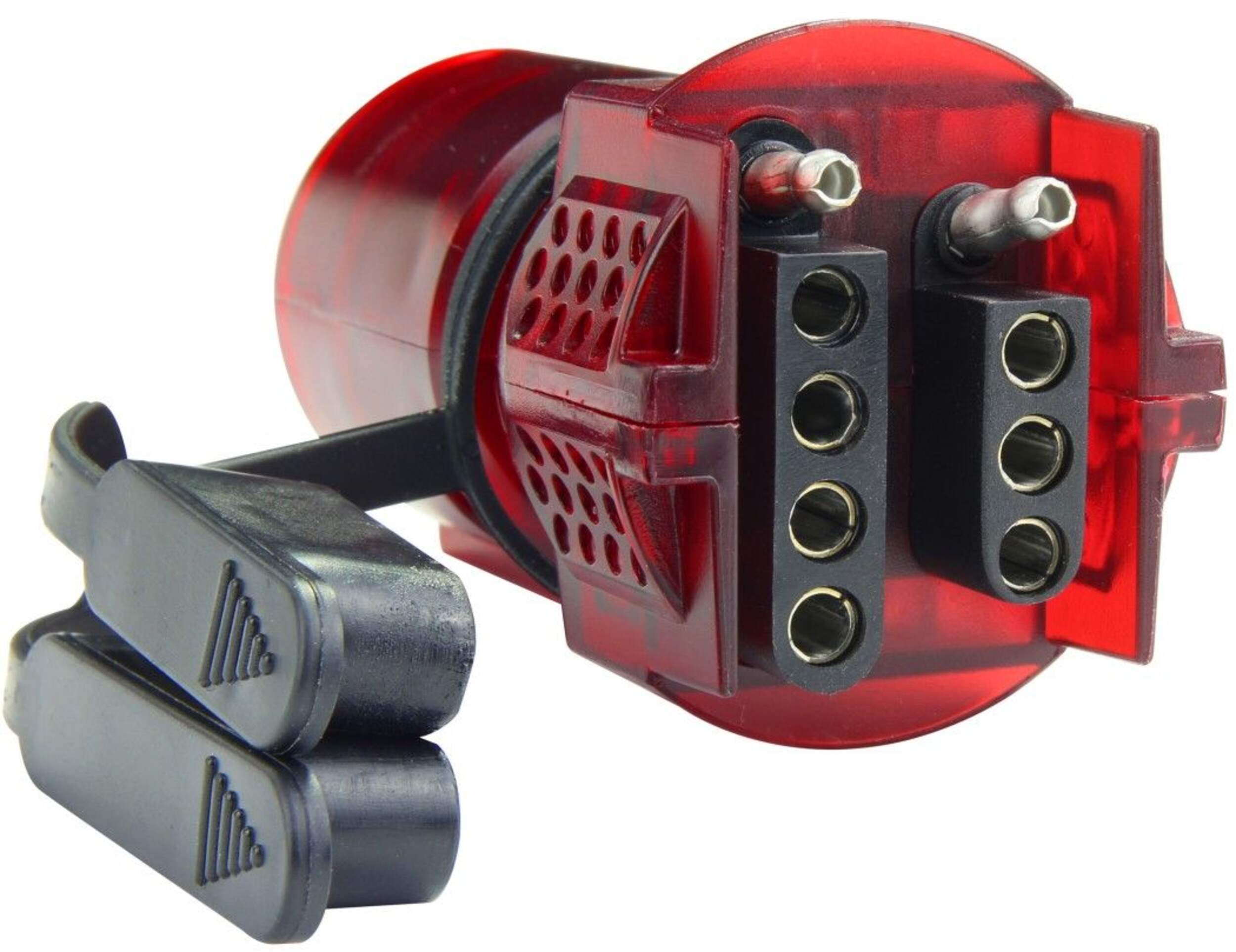 The Hopkins Towing Solution NiteGlow Multi-Tow Adapter simplifies your towing setup by converting your 7 blade vehicle connector to a 4 flat or 5 flat trailer connection. Perfect for verifying a solid connection, its Nite-Glow™ feature ensures peace of mind by illuminating red when power is properly flowing, eliminating guesswork during installation. The durable, corrosion-resistant design ensures long-lasting reliability for every towing need.