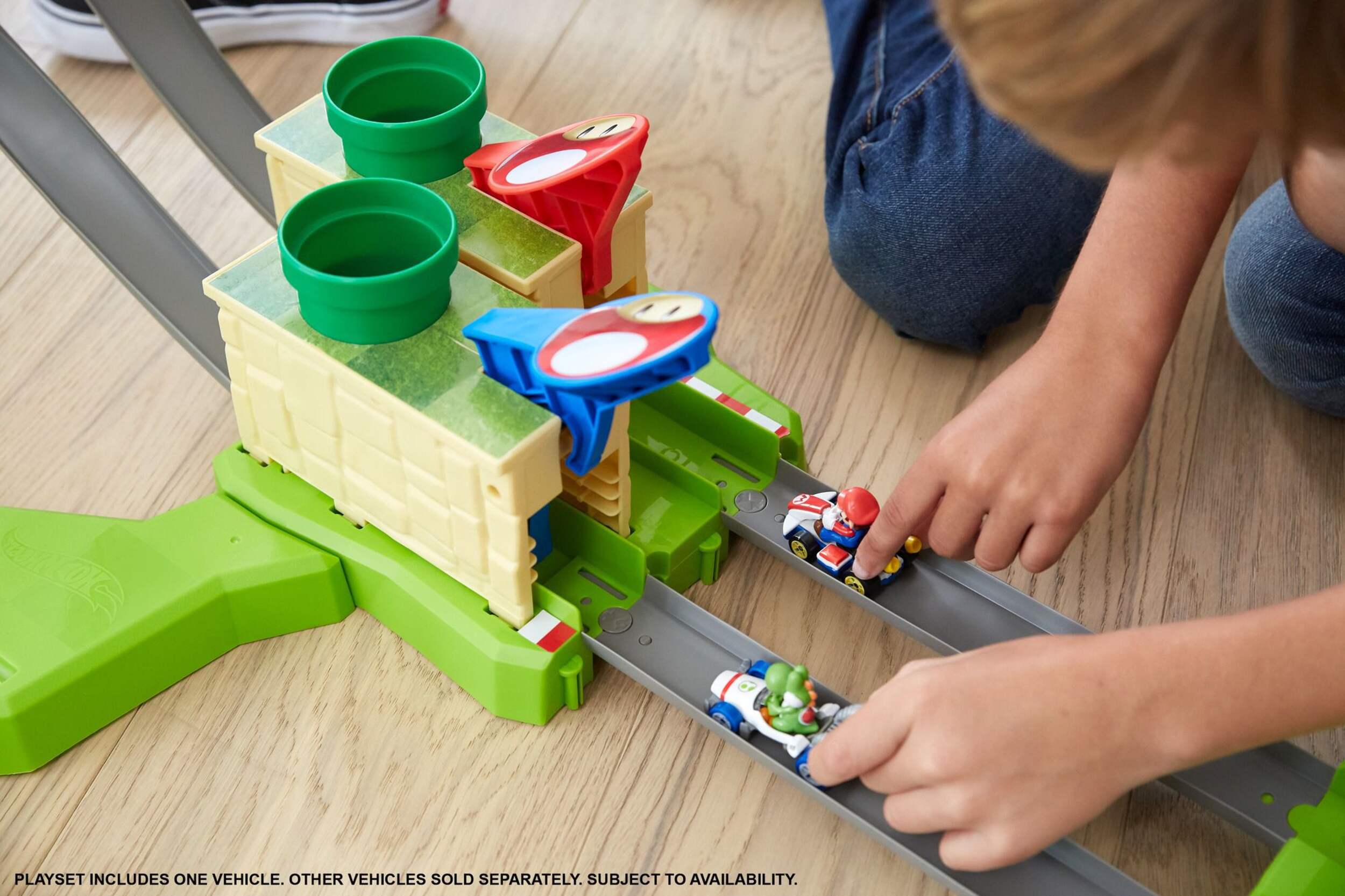 The Hot Wheels Mario Kart Playset brings the excitement of Mario Kart to life. Kids can launch their favourite Mario Kart characters through challenging stunt tracks, mimicking the action from the beloved video game. With reconfigurable track pieces, kids can create new courses and race to the finish. This set is perfect for ages 5 and up and offers endless racing fun for young fans of both Hot Wheels and Mario Kart.