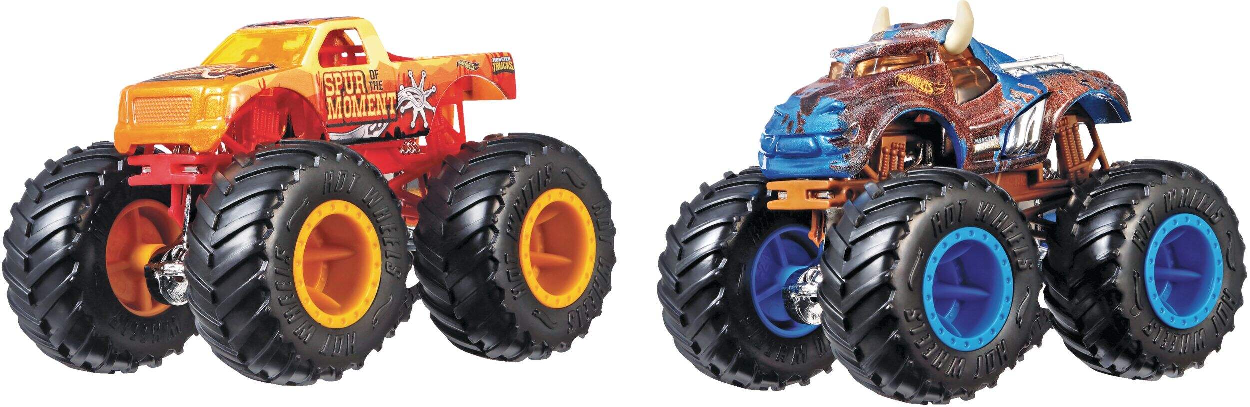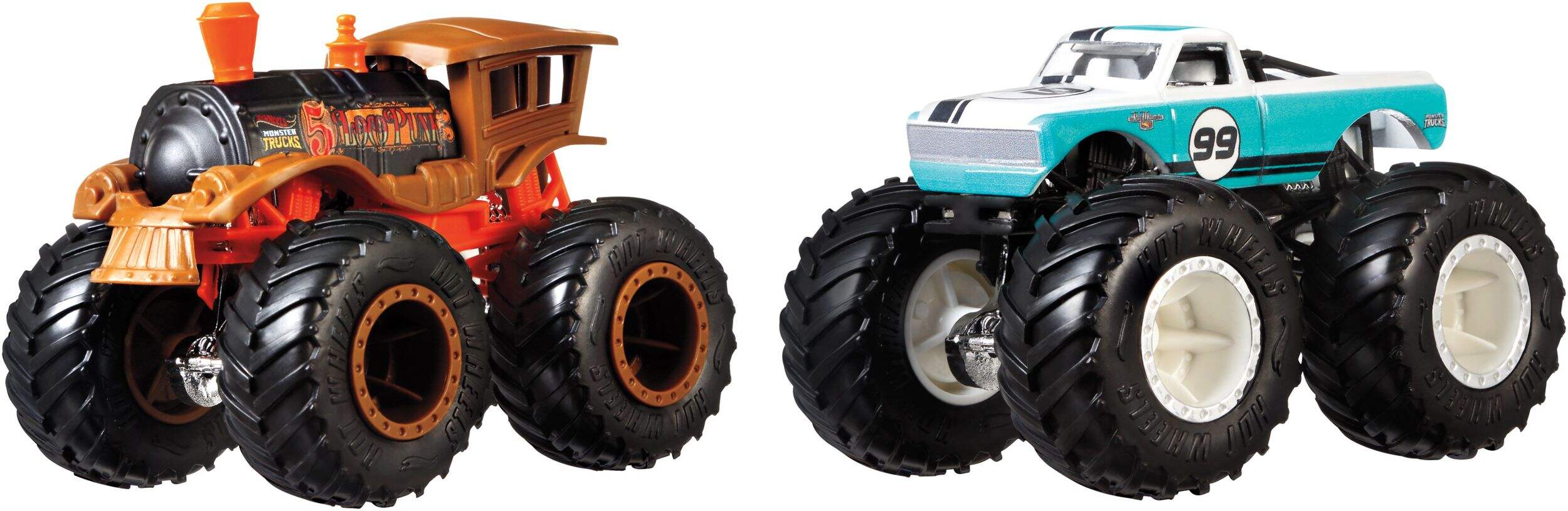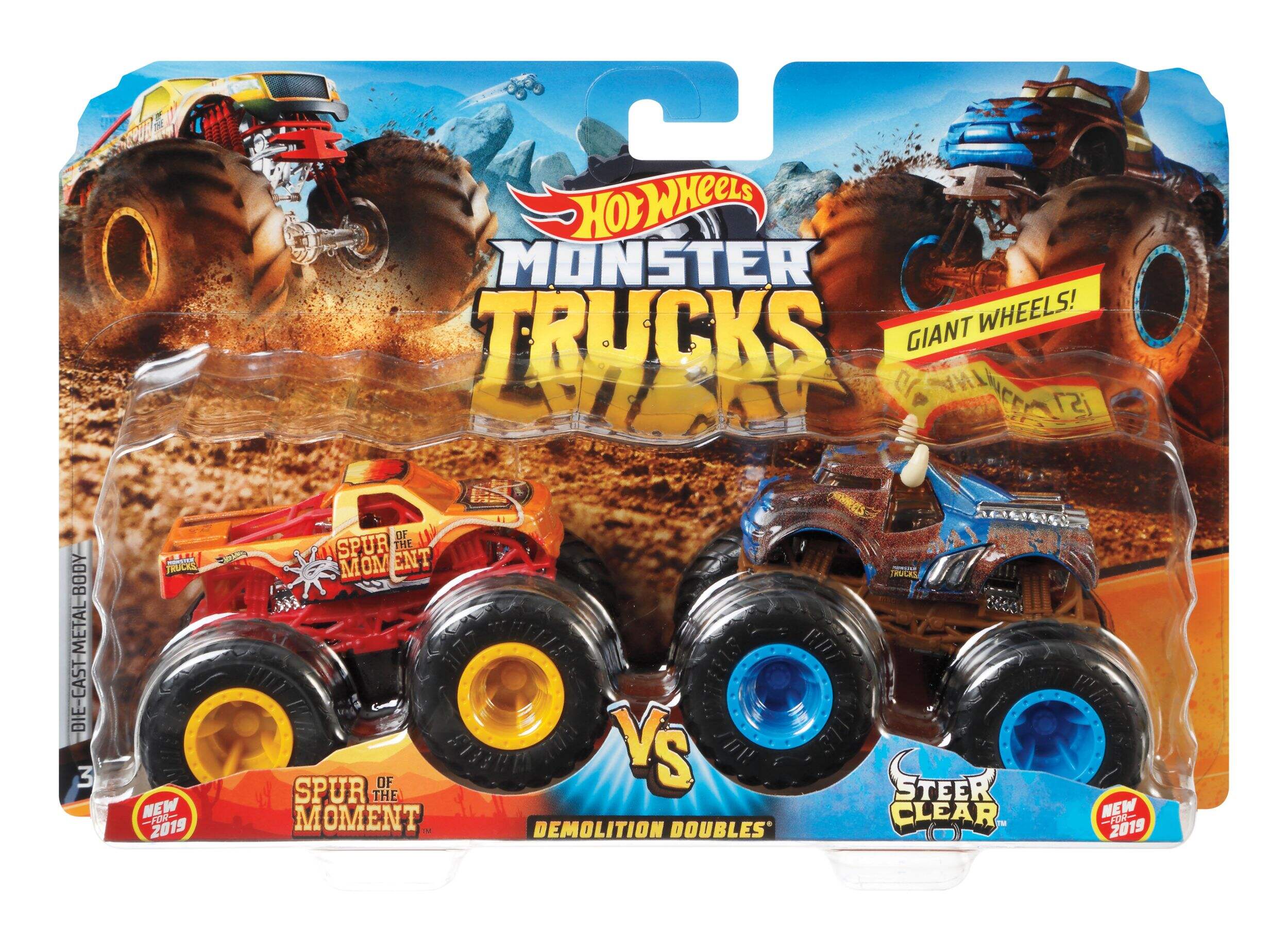 These two-packs of Monster Trucks squaring-off for epic crash attacks are purposely paired for head-to-head battles with their GIANT wheels and big personalities