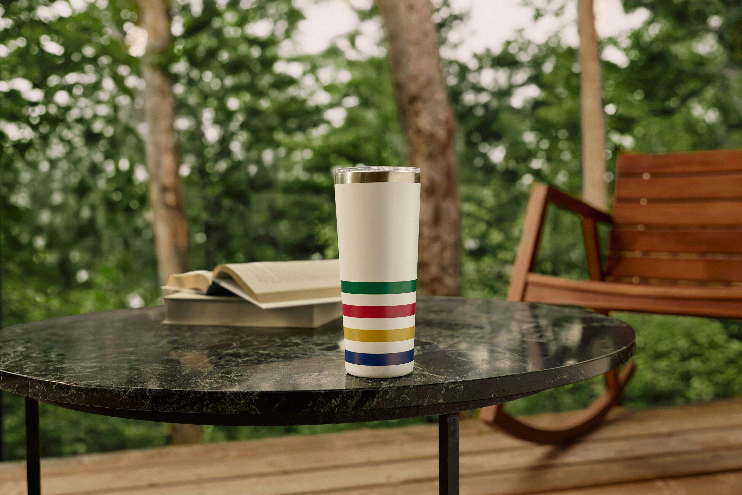 Carry more than your favourite drink—carry a piece of Canadian heritage in this Hudson’s Bay Stripes™ Stainless Steel Travel Mug. Featuring the iconic Hudson’s Bay Stripes, this white tumbler is perfect for your morning coffee on the go, keeping your tea hot during long commutes or enjoying a cold beverage at the office.