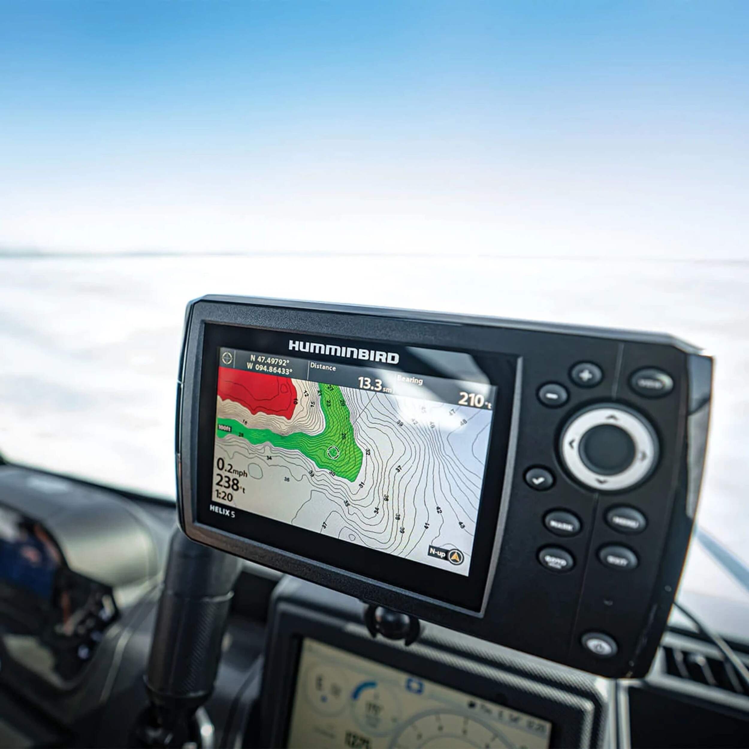 Enhanced Built-in Humminbird Basemap provides a clear view of underwater terrain and surrounding points of interest so you can fish and navigate with total confidence