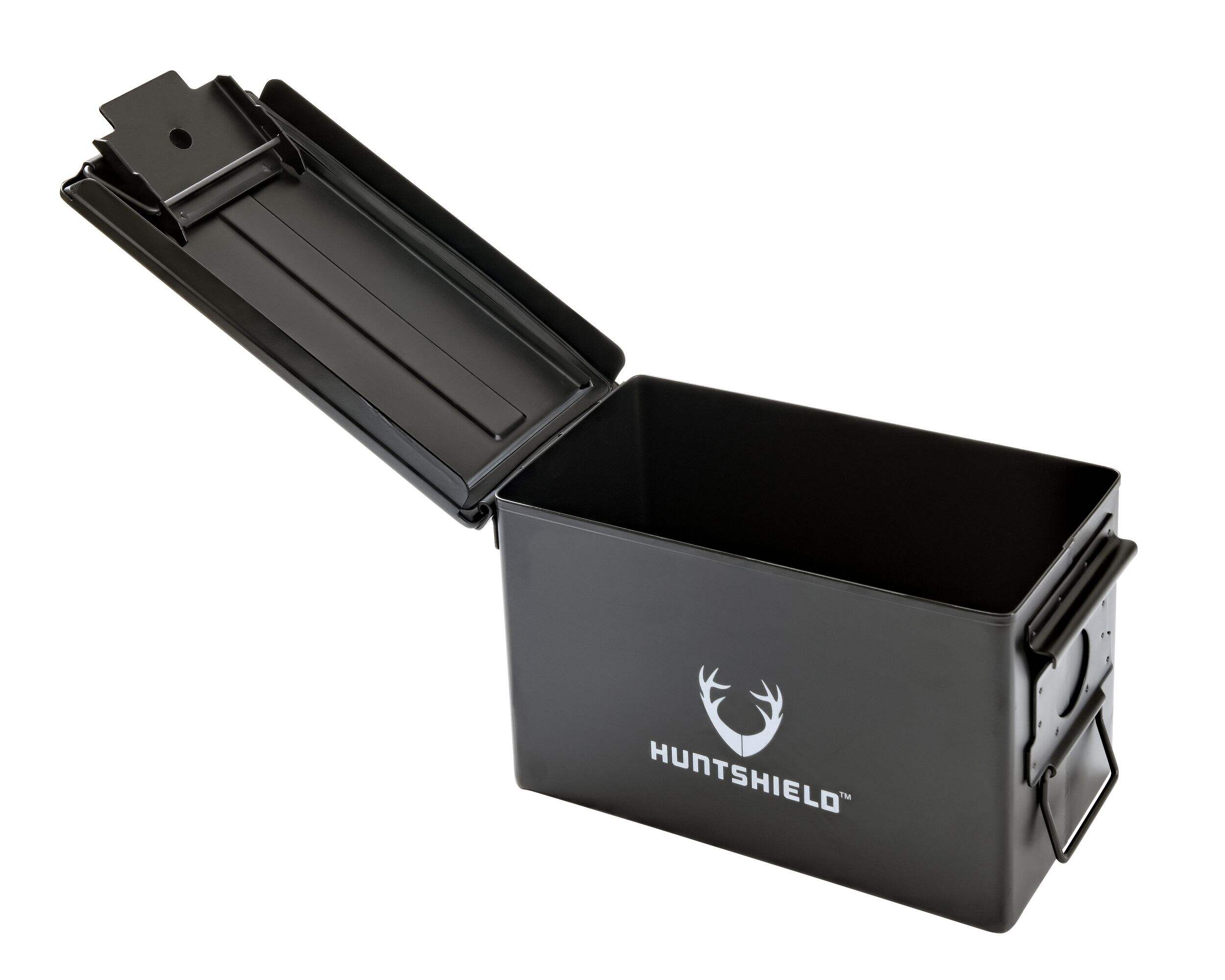 The Huntshield Steel Ammunition Storage Can is built to securely store and protect ammunition, tools and other valuables. Constructed from durable steel, this storage can provides heavy-duty protection against impact and environmental factors. Ideal for hunters, shooters and outdoor enthusiasts, the medium-sized Huntshield storage can is a reliable choice for secure, portable storage both at home and in the field.