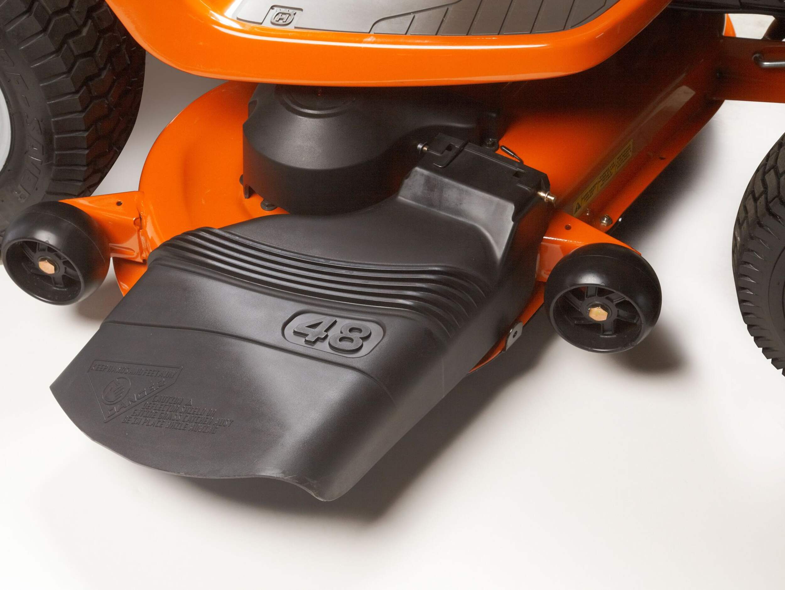 With a 48" (122 cm) reinforced stamped cutting deck