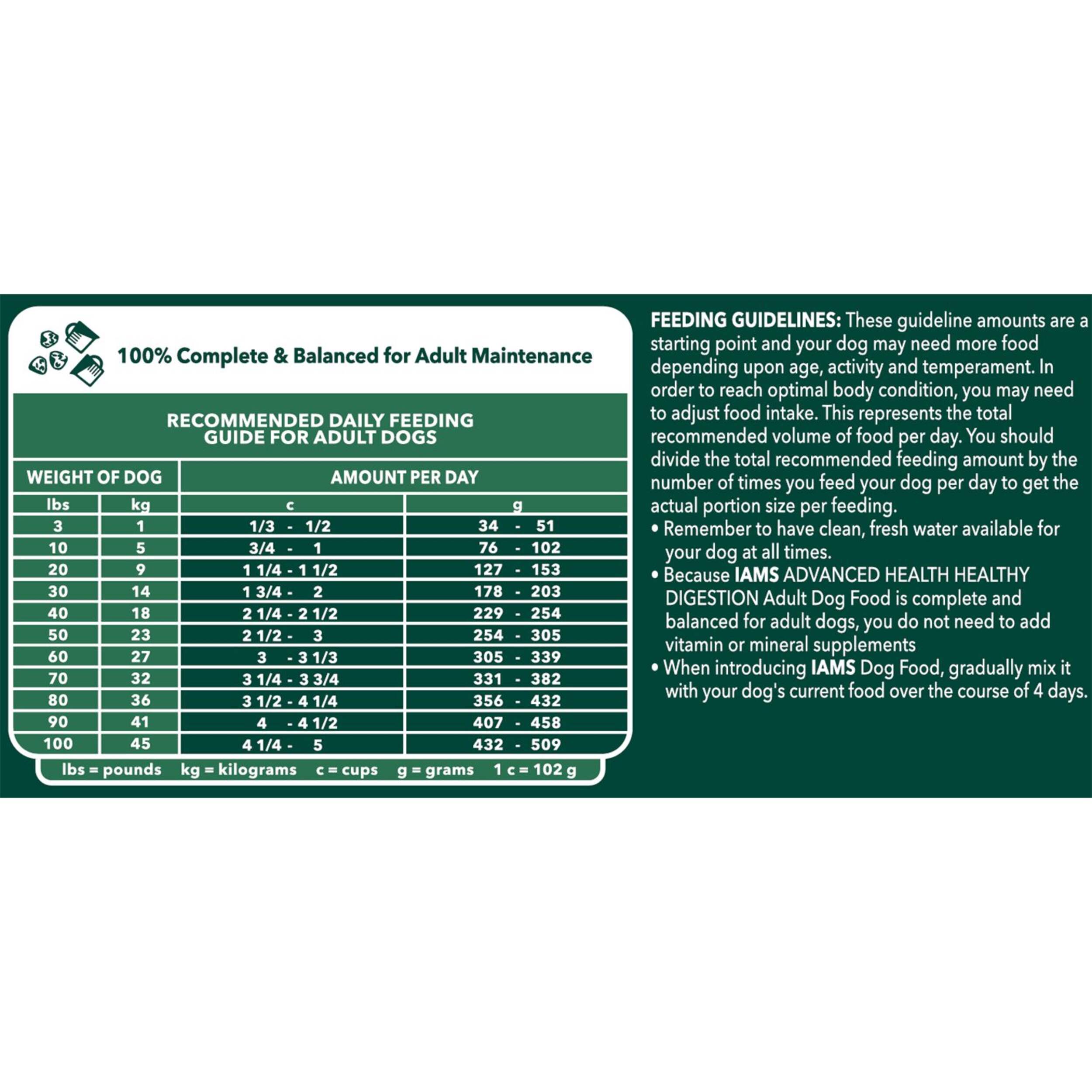 As pet parents, we all want to feel confident that we are doing the best for our pets. IAMS ADVANCED HEALTH™ Healthy Digestion is designed with ingredients to support your whole-body health, and features clinically proven technology to support healthy digestion. This chicken-first recipe is blended with wholesome grains and formulated without artificial flavours or preservatives. With this premium tailored recipe, you can be confident that your dog will always be at their best, today and every day.