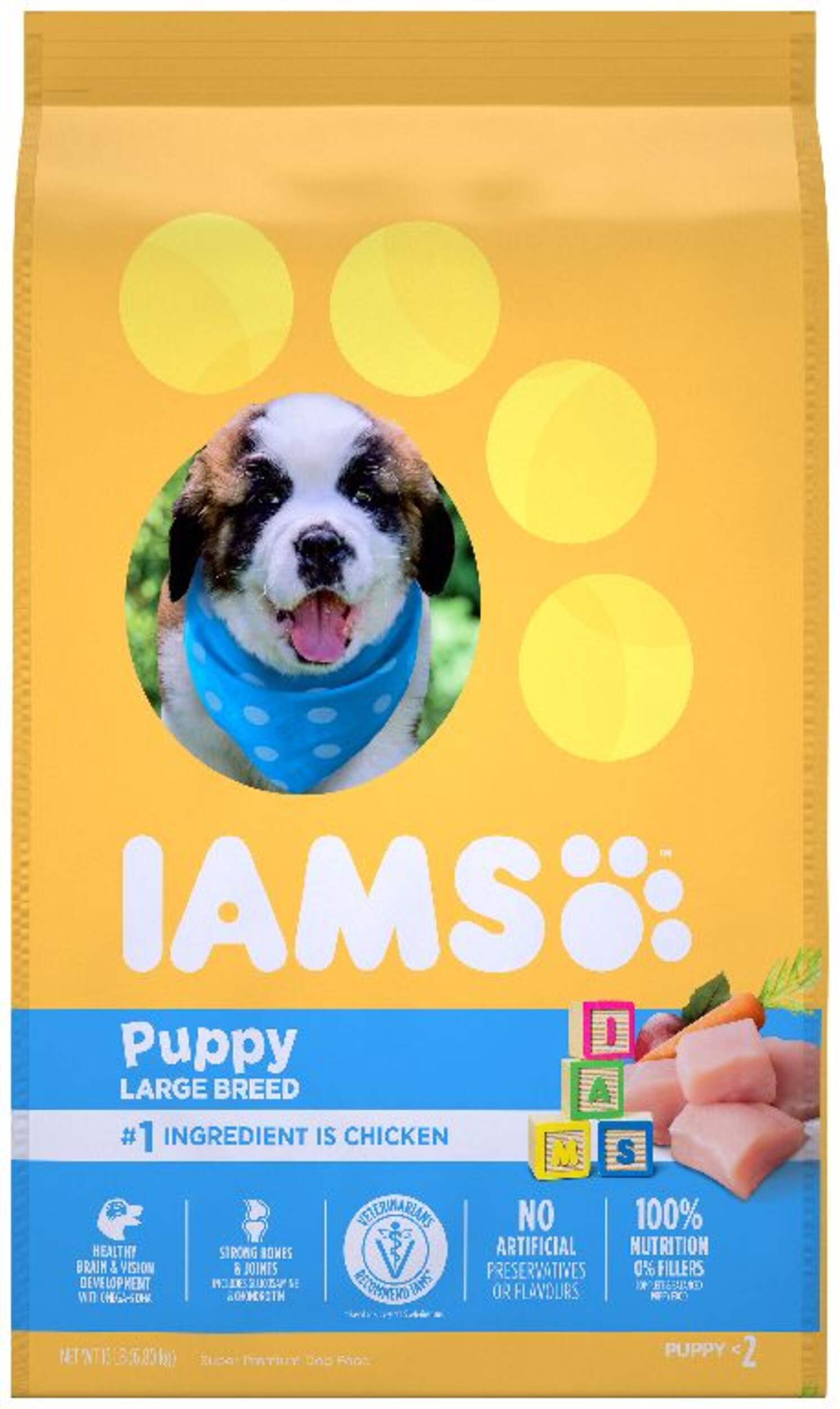 IAMS Puppy Large Breed Dry Dog Food with Real Chicken was created to meet their specific wellness and nutritional needs as they grow up to be healthy adults. With real, farm-raised chicken as the first ingredient, this dry puppy food is made with 22 key nutrients like those found in mother’s milk, including omega-3 DHA to promote healthy cognition. Plus, the tasty dog kibble promotes strong muscles with quality protein.