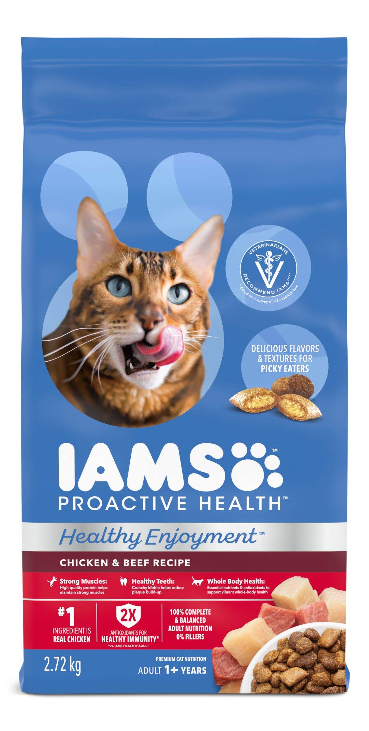 Designed for Picky Eaters: IAMS Healthy Enjoyment is a delicious cat food for picky eaters that combines kibble and tasty bites to create a soft and crunchy experience your adult cat will find irresistible