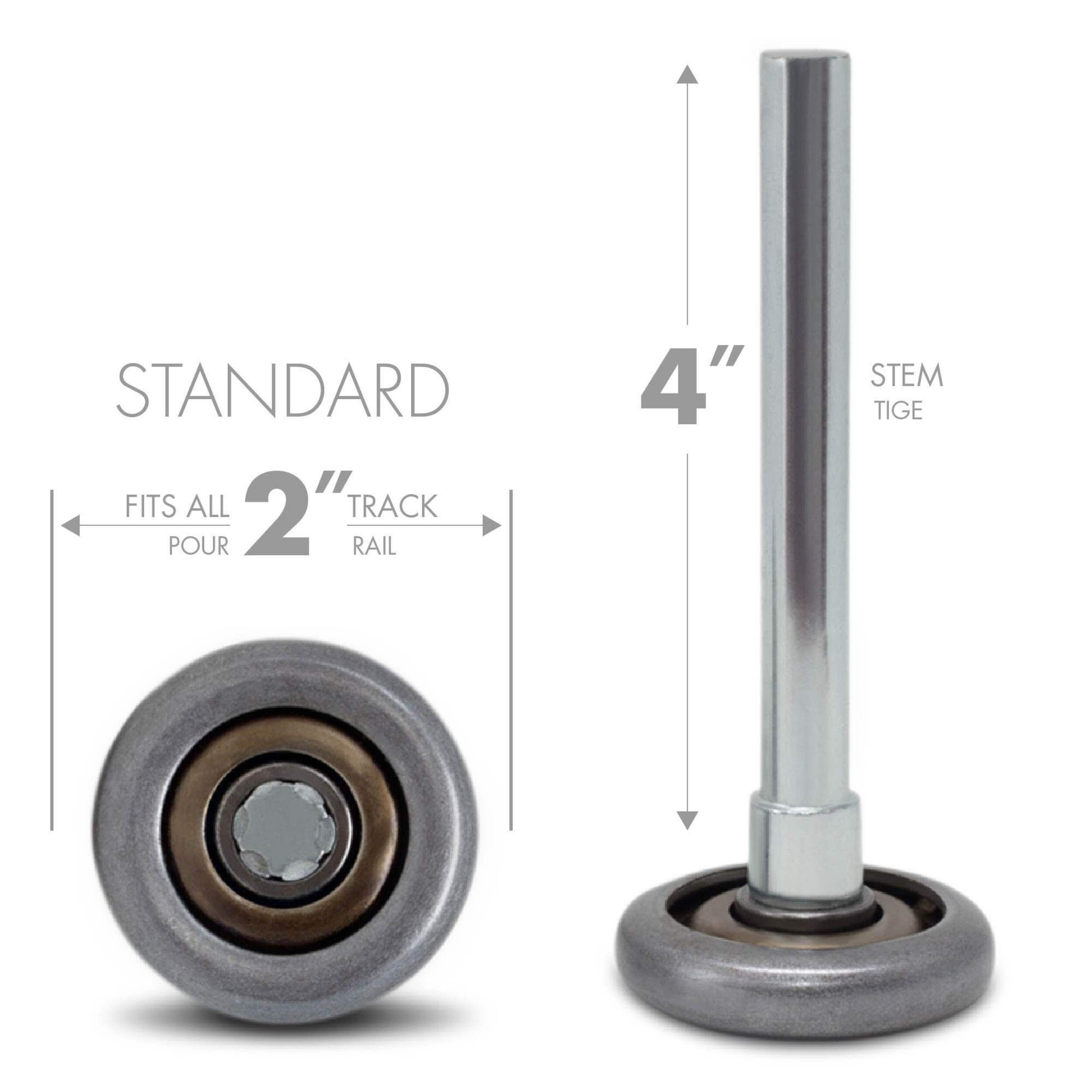 Replacement garage door rollers for home use. Perfect for replacing old, worn, noisy, or broken rollers. Garage door rollers are easy to replace yourself. Standard wheels are made of nylon and wear out. Our solid steel wheels offer the ultimate in durability, so you can be sure they'll last for years to come. Each roller contains ten ball bearings, for smooth operation.