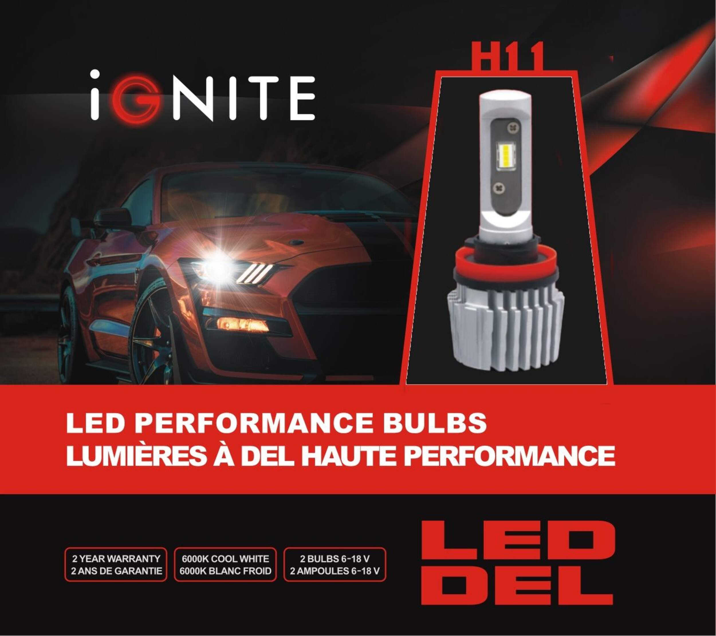 For overall safety on the road at night, choose these Ignite H11 LED Headlights. These LED headlight bulbs emit a striking, cool white light that surpasses the brightness of traditional halogen bulbs and provides better visibility when you're driving after the sun goes down. The easy-to-use and energy-efficient design makes it easy to upgrade your vehicle's headlights to LED bulbs. Available in a convenient pack of two.