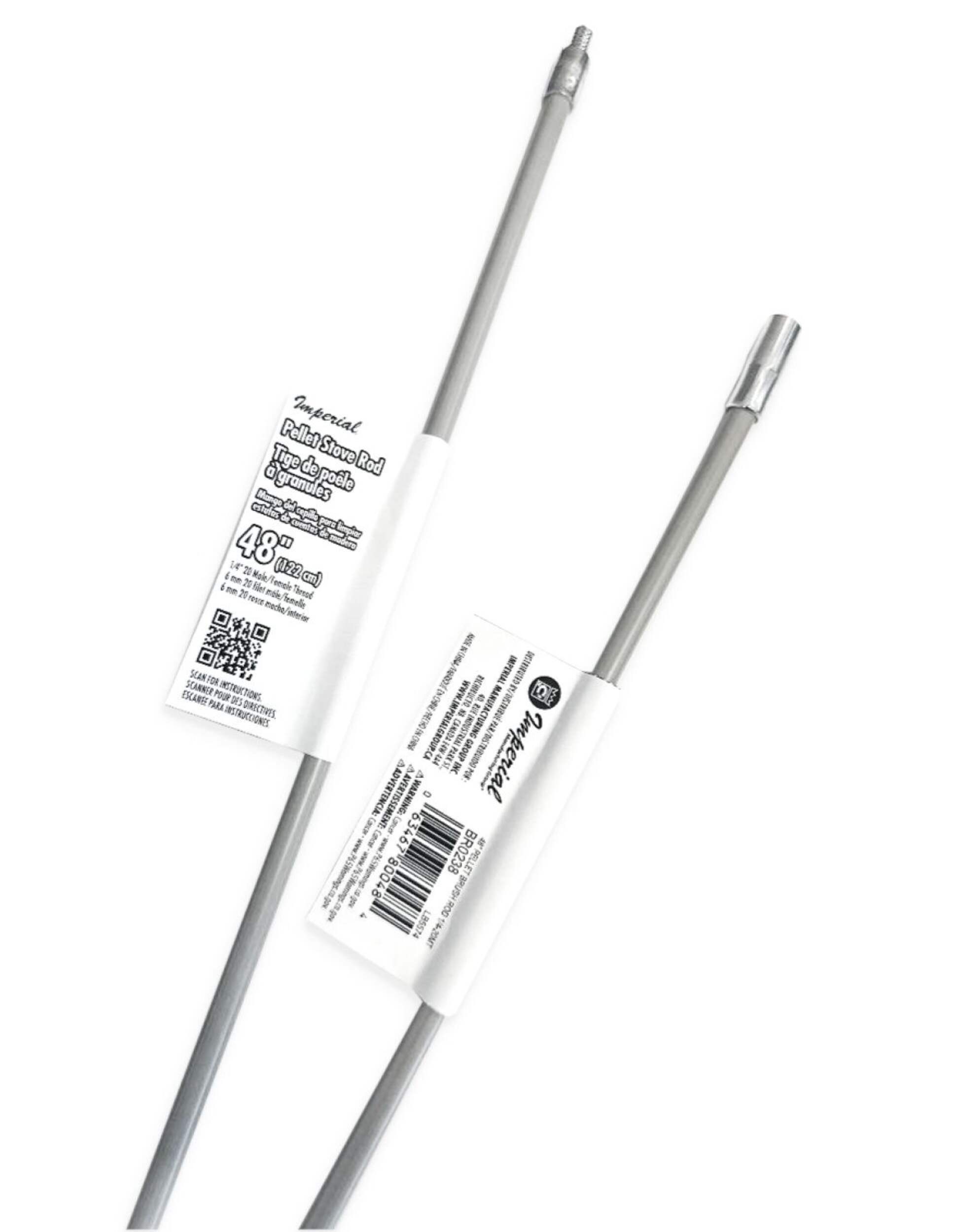 The Imperial Chimney Brushes Flexible Nylon Pellet Stove Rod is a versatile cleaning tool intended for pellet stoves and dryer vents. Designed with flexibility to keep tight, otherwise unreachable spaces free from soot, debris, and dirt, this rod can navigate sharp turns without getting caught in elbows. Featuring 1/4" - 20 threads, it is compatible with either 64-2832 (3" brush) or 64-2833 (4" brush) for efficient stove cleaning. This 48-inch stove rod can also be used with other models, like 64-2800 or 64-2807.