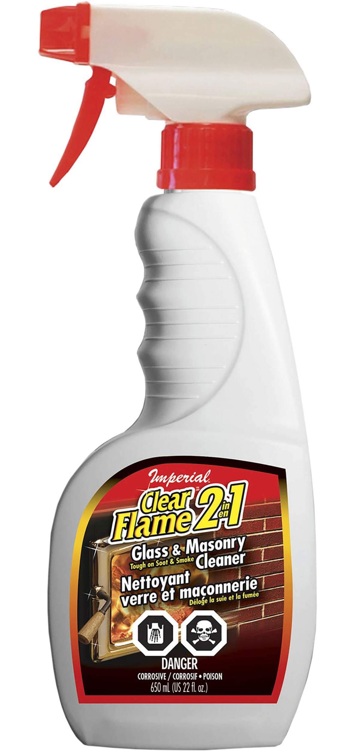 Imperial Clear Flame 2-in-1 Glass and Masonry Cleaner offers a simple solution for soot, baked-on creosote and smoke stains. It is safe for use on brass, paint and lacquer, ensuring your surfaces remain unharmed. Its thickened formula clings to vertical surfaces for efficient cleaning. The improved spray trigger ensures easy application and incorporates child safety features. It is suitable for stove and fireplace glass doors, screens, ceramic and enameled surfaces.