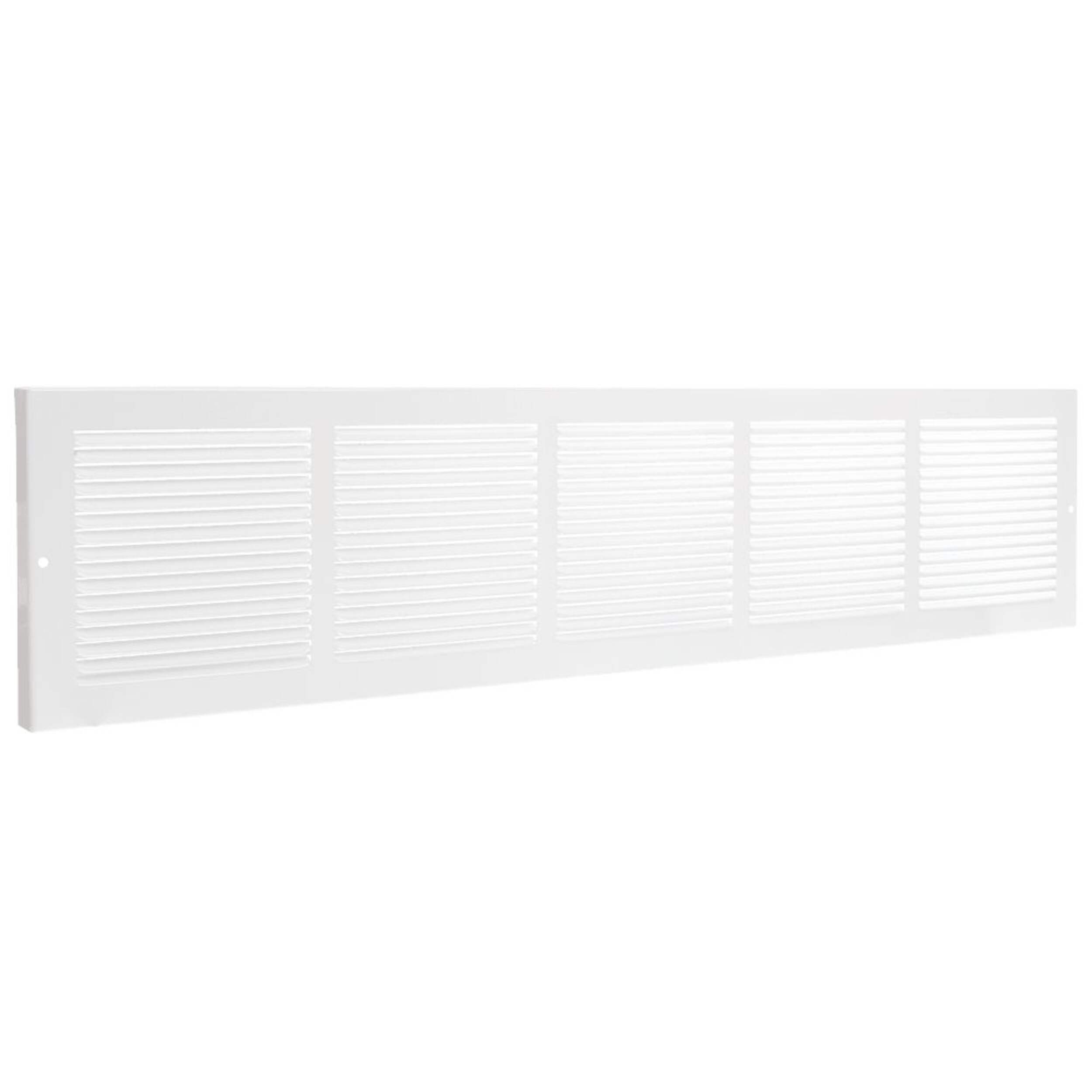 The Imperial Steel Return Air Baseboard Grille For Cooling/Heating Systems, White, 30 x 6-in, blends seamlessly into your home's decor. Made of durable metal with a tough powder-coated painted finish in cool white, this baseboard grill allows heated or cooled air to circulate efficiently at the bottom of your walls. The low-profile 7/8-inch turnback sits flush against the baseboard, maintaining a neat and tidy appearance. An ideal solution for circulating conditioned air throughout your home.