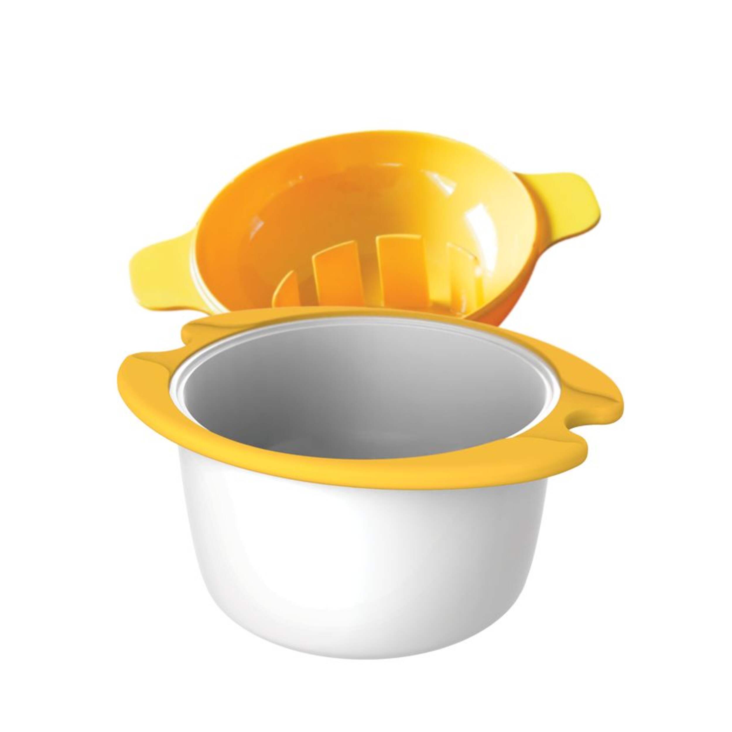 IncrediEgg makes fluffy eggs on demand, saving you stove top hassles and pan washing. Simply crack your eggs into this dedicated microwave cooker, separate the yolks and whites with the built-in divider and pop it in the microwave.The stay-cool handles and non-stick interior mean easy retrieval and cleaning of your scrambled, poached or omelette eggs. The included cooking guide customized for your microwave wattage ensures perfect results each time,whether you fancy egg sandwiches, eggs Benedict or a quick weekday omelette.