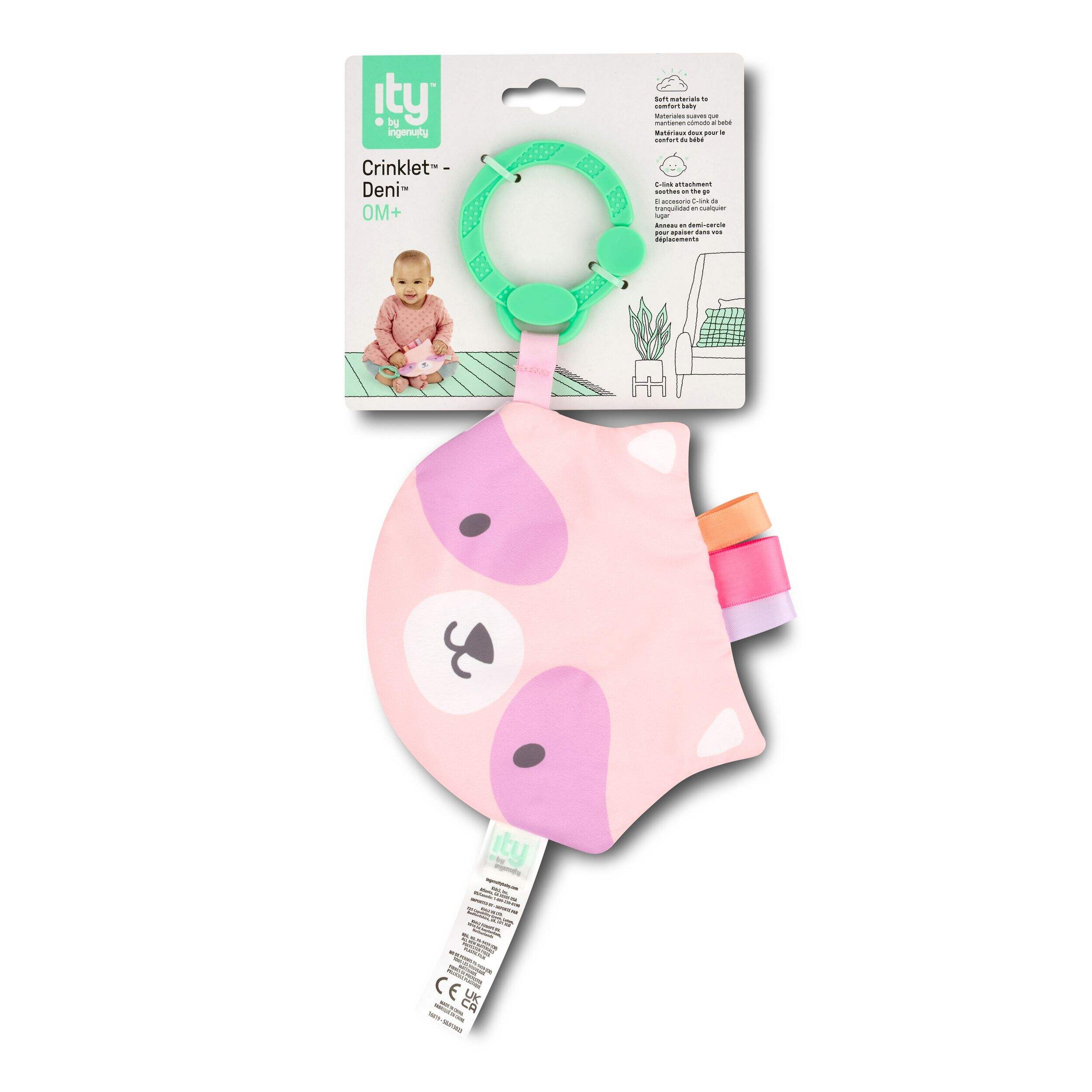 Spark your baby's curiosity with the Ingenuity sensory activity toy! This adorable plush crinkle toy, featuring Kitt the fox and Deni the raccoon, provides comfort both at home and on the go. Crafted from soft fabrics perfect for your baby's gentle touch, the hidden crinkle material adds an element of surprise. Whether you're running errands or heading to a lunch play date, the convenient C-link allows you to easily attach the toy to stroller handles or diaper bags, keeping your little one entertained wherever you are.