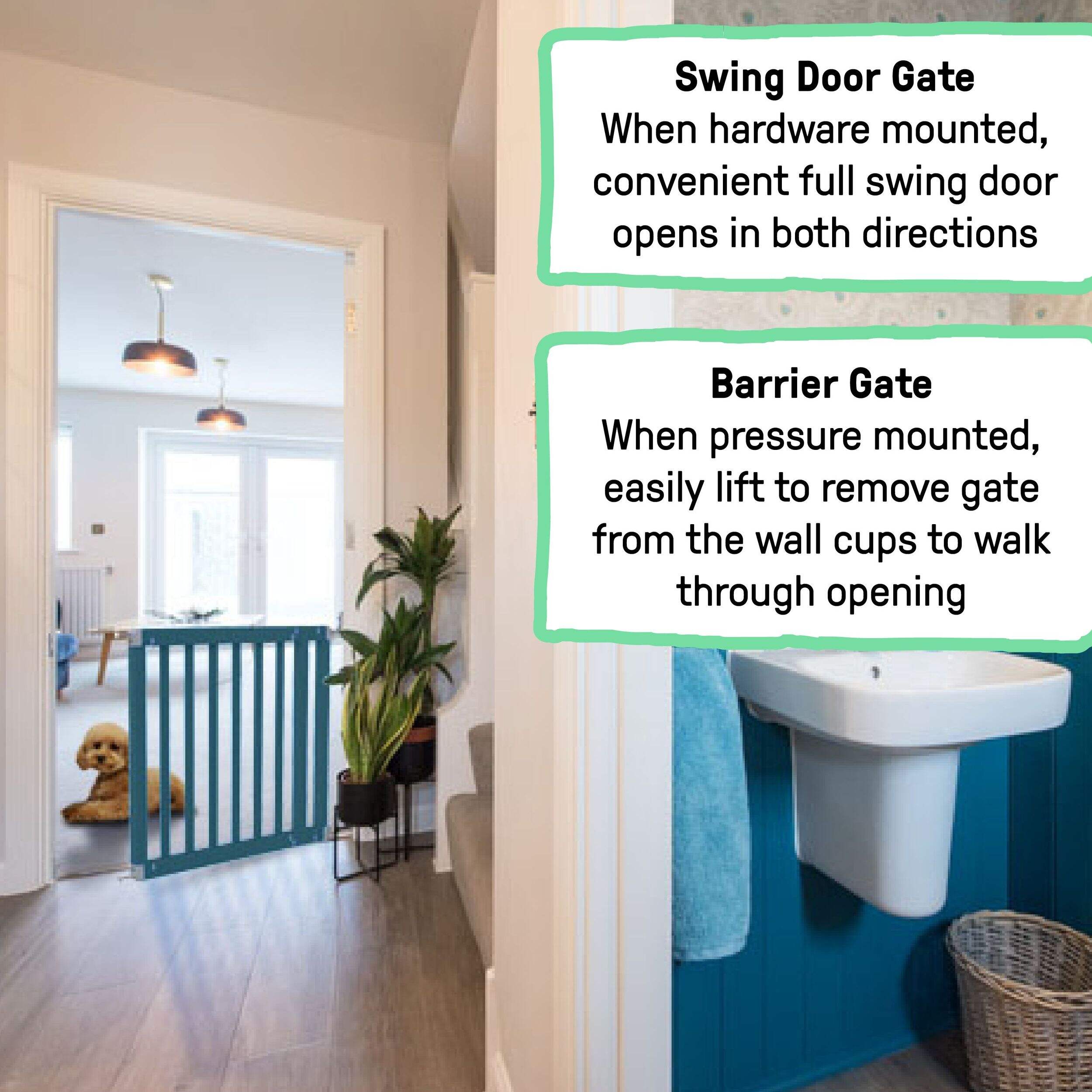 For the first time, you can have the security of a baby gate without compromising an inch of your style. The Ingenuity Doorway 36S Series Custom Collection not only keeps children and pets safe, but it also offers customizable wood panels that can be painted or stained to reflect your decor vision. No prep required – it’s ready for your creative touch! And it looks great left natural, too. Discover recommended baby-safe paints and stains by scanning the QR code on the package. Paintable & stainable gate to match your decor style; no prep required;Choose between pressure mount or hardware mount; hardware included; Convenient full-swing door for quick passage when hardware mounted; Easy release pressure mount mode protects against damage & no tools required;Fits doorways 30-36" wide; easy to assemble and remove; 28" tallProtect children and pets throughout home with 28” tall gate;Meets ASTM & stringent European safety standards; CARB compliant.