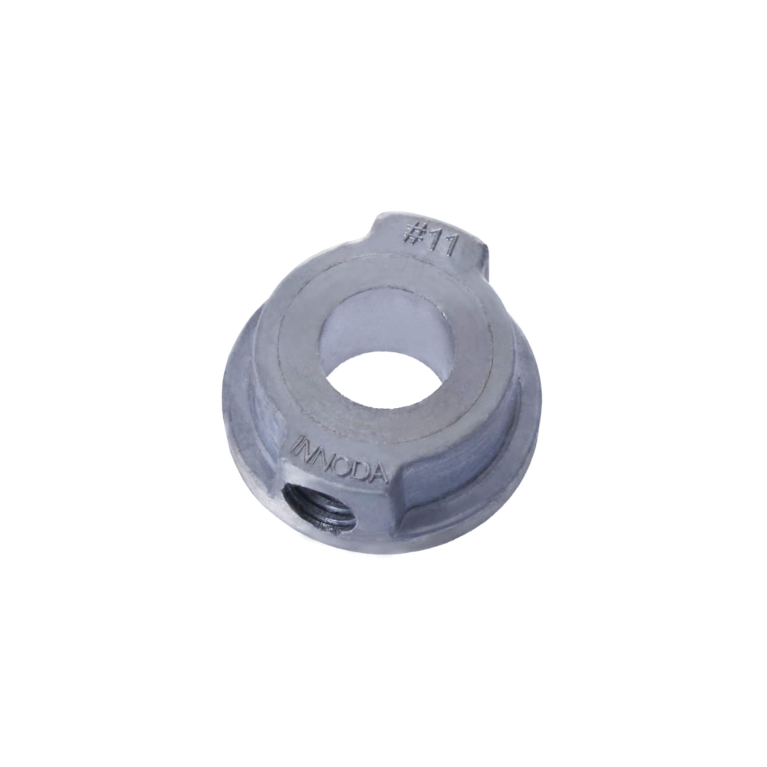 This shaft collar from Innoda is crafted from durable aluminum to securely lock various accessories like flange washers onto arbors with a 5/8 inch bore. Just use a 5/16 inch set screw (not included) to tighten the collar around the shaft keeping your project parts neatly organized and firmly in place. Perfect for the hobbyist or mechanic who needs a simple, no-nonsense solution to holding workpieces while they work.