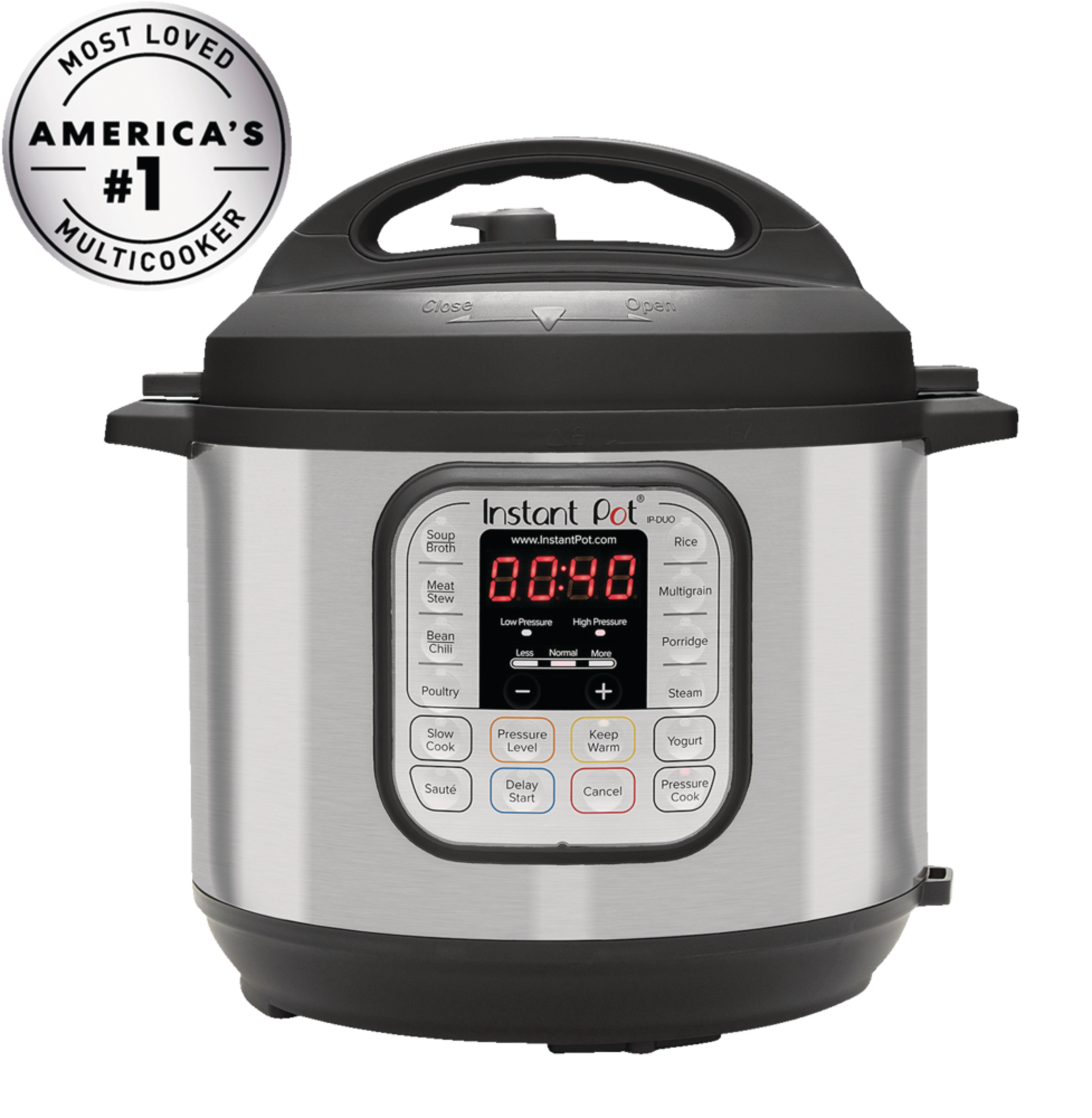 14 smart built-in programs – Soup/Broth, Meat/Stew, Bean/Chili, Poultry, Sauté/Searing, Steam, Rice, Porridge, Multigrain, Slow Cook, Keep-Warm, Yogurt, Pasteurize and Pressure Cook