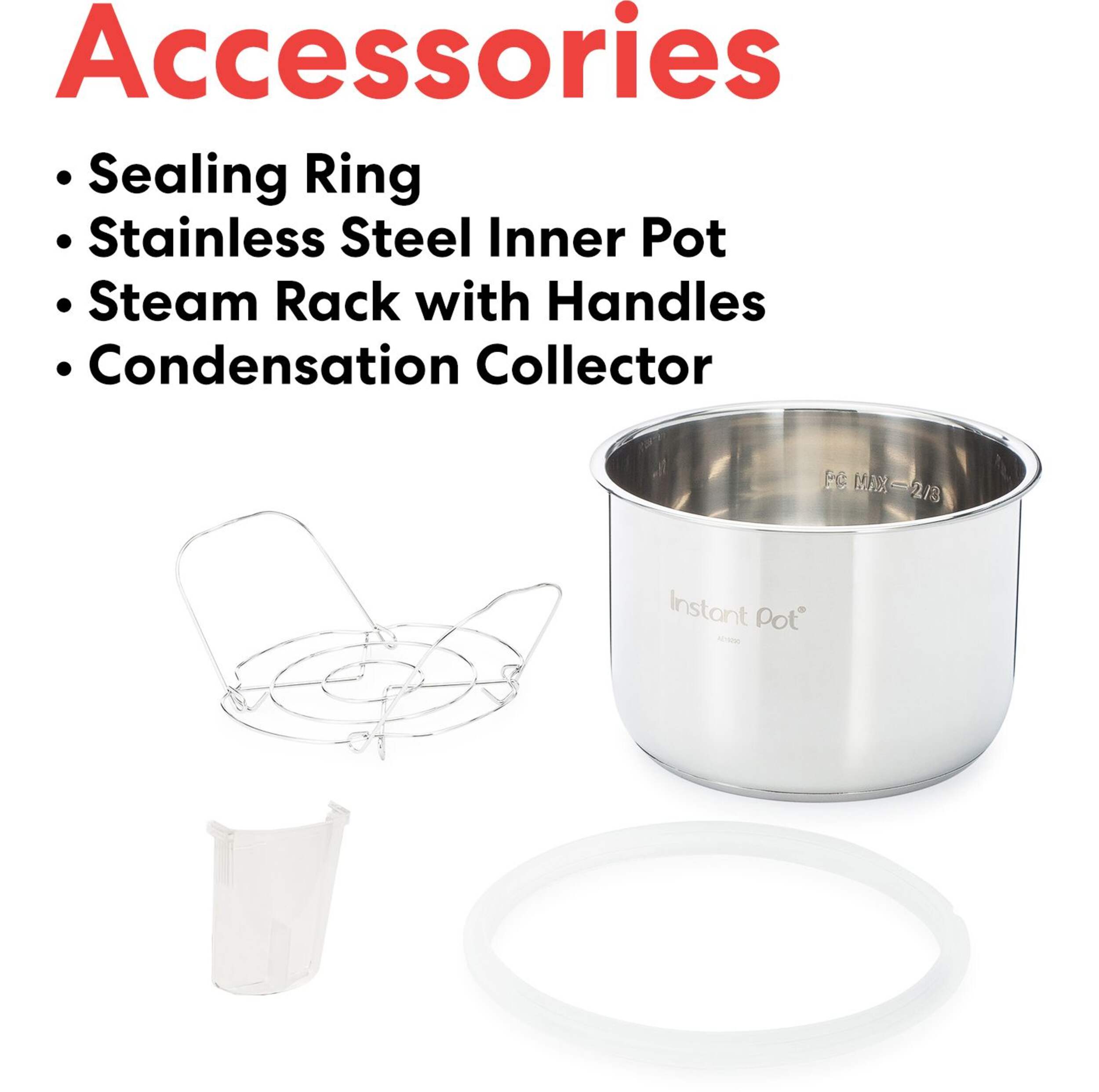 Accessories include: Steam rack with handles