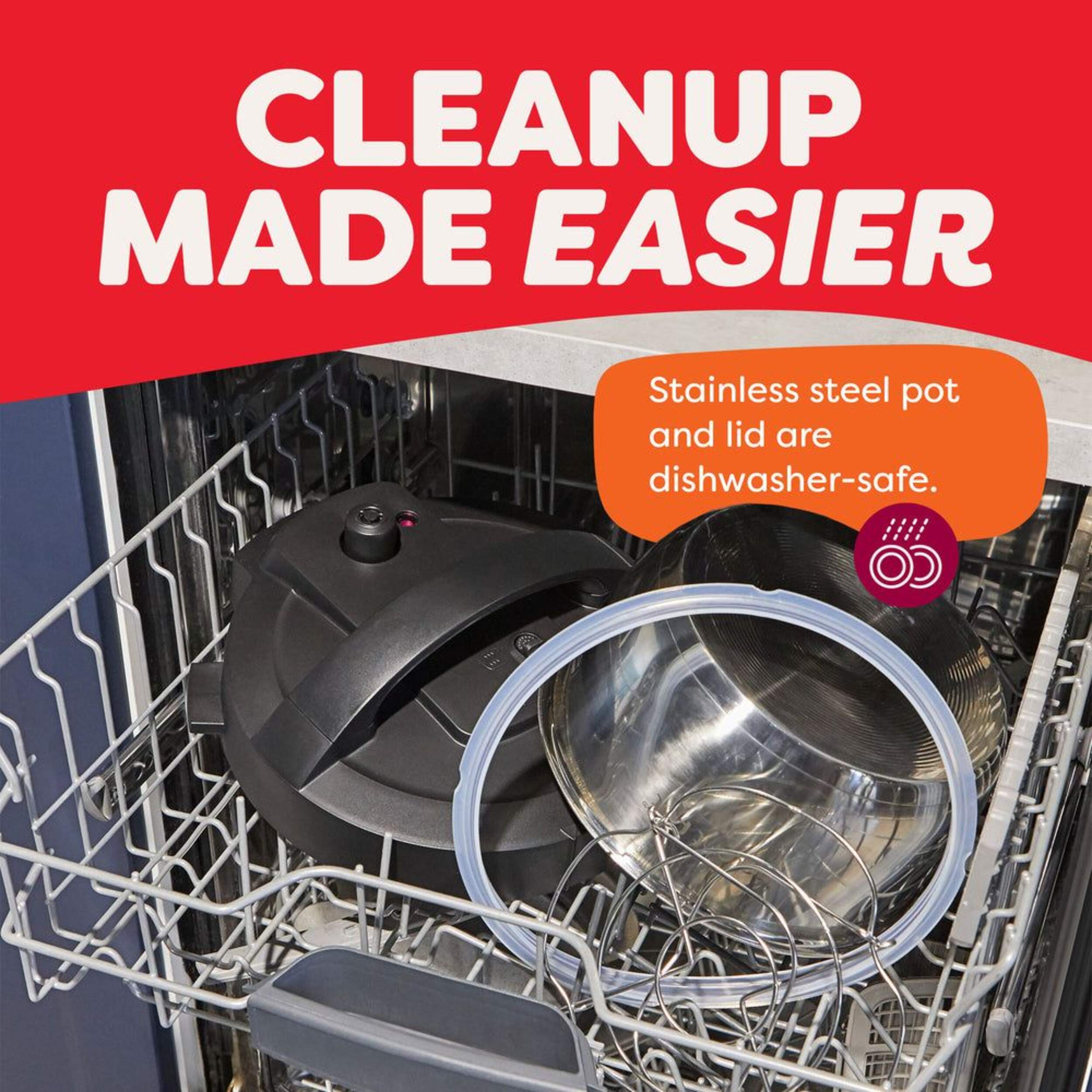 Easy cleanup with dishwasher-safe lid and cooking pot