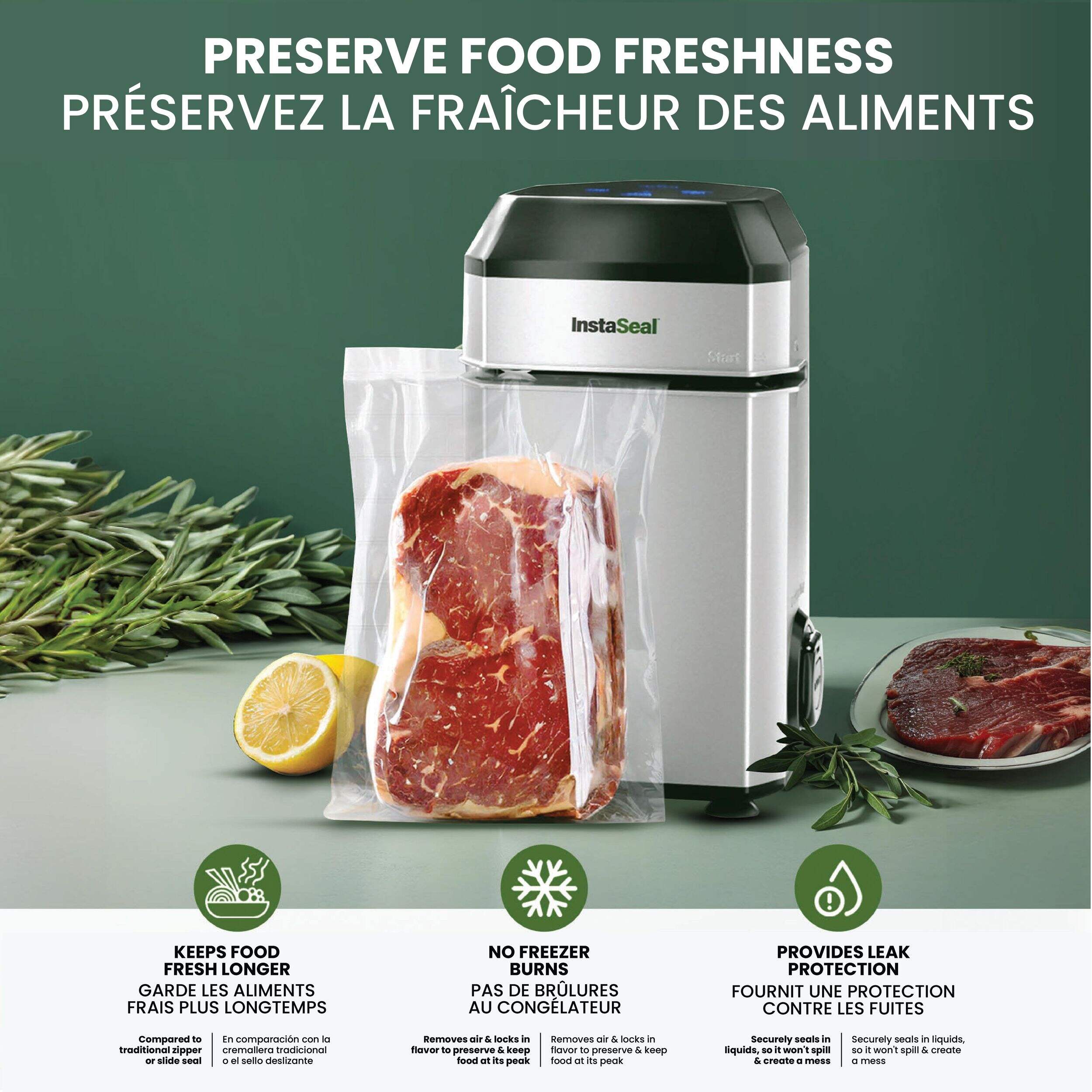 • Airtight double seal: InstaSeal Vacuum Sealer ensures food stays fresher for longer compared to traditional freezer bags, with no risk of freezer burns