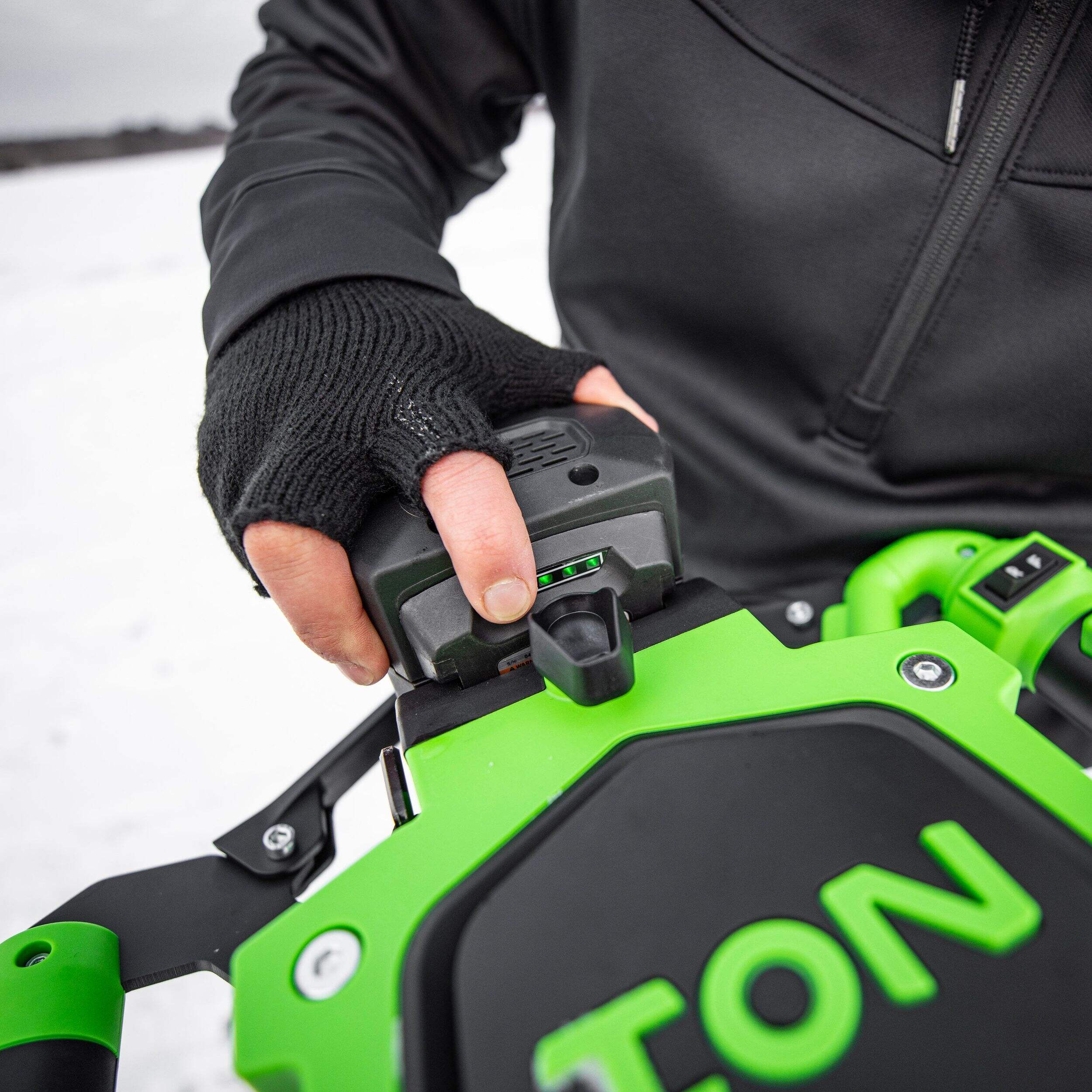 UP TO 1200 INCHES PER CHARGE – Includes (1) 4Ah ION® Gen 3 battery, powering the 10" Alpha Plus through up to 1200 inches of ice per charge