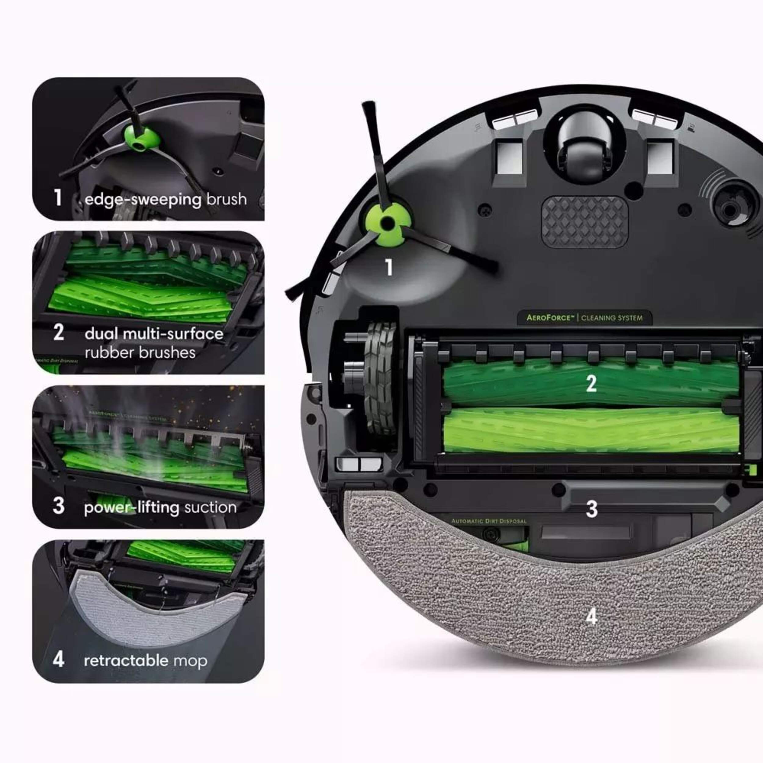 Cleaning your floors is easier than ever with help from the iRobot Roomba Combo J7+ Self Emptying Robot Cordless Vacuum & Mop. This advanced four-stage cleaning system seamlessly transitions from carpets to hard floors, using intelligent D.R.I. technology to keep carpets dry while mopping hard floors. The J7+ can avoid obstacles in its cleaning path, like towels, shoes or even pet waste, and empties itself for up to 60 days. Controlled via an app or voice assistant and powered by iRobot OS, the J7+ knows where to clean thanks to smart mapping technology, and continually learns and updates itself to optimize your home's cleaning routine.