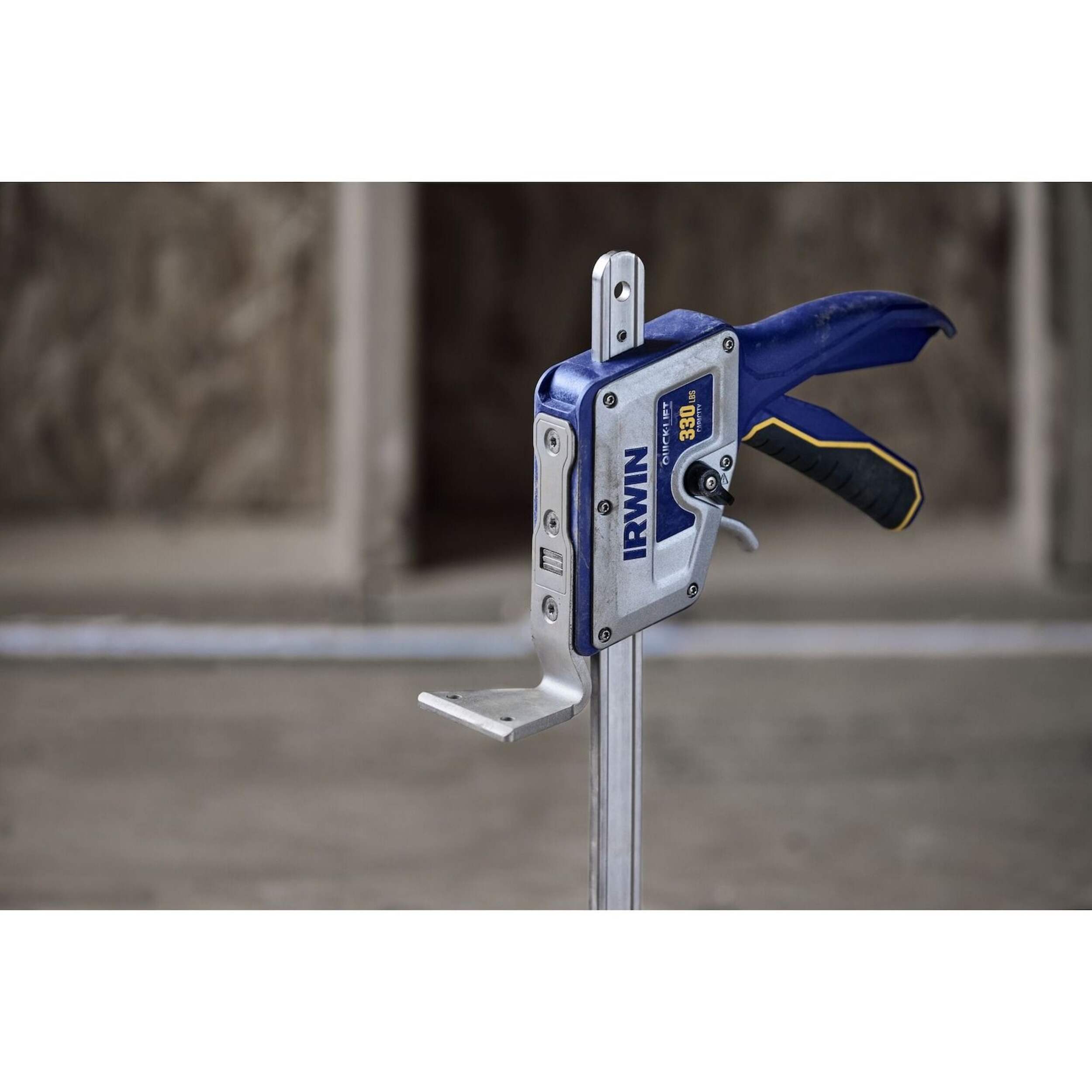 The Irwin 330-lb Quick-Lift Manual Heavy-Duty Jack & Clamp enhances productivity by efficiently lifting, levelling, and holding materials securely. Designed for versatility, this tool is perfect for a wide range of applications, including installing cabinets, levelling flooring, and other construction tasks. Its ergonomic design, combined with convenient features, makes it a convenient addition to any toolkit.