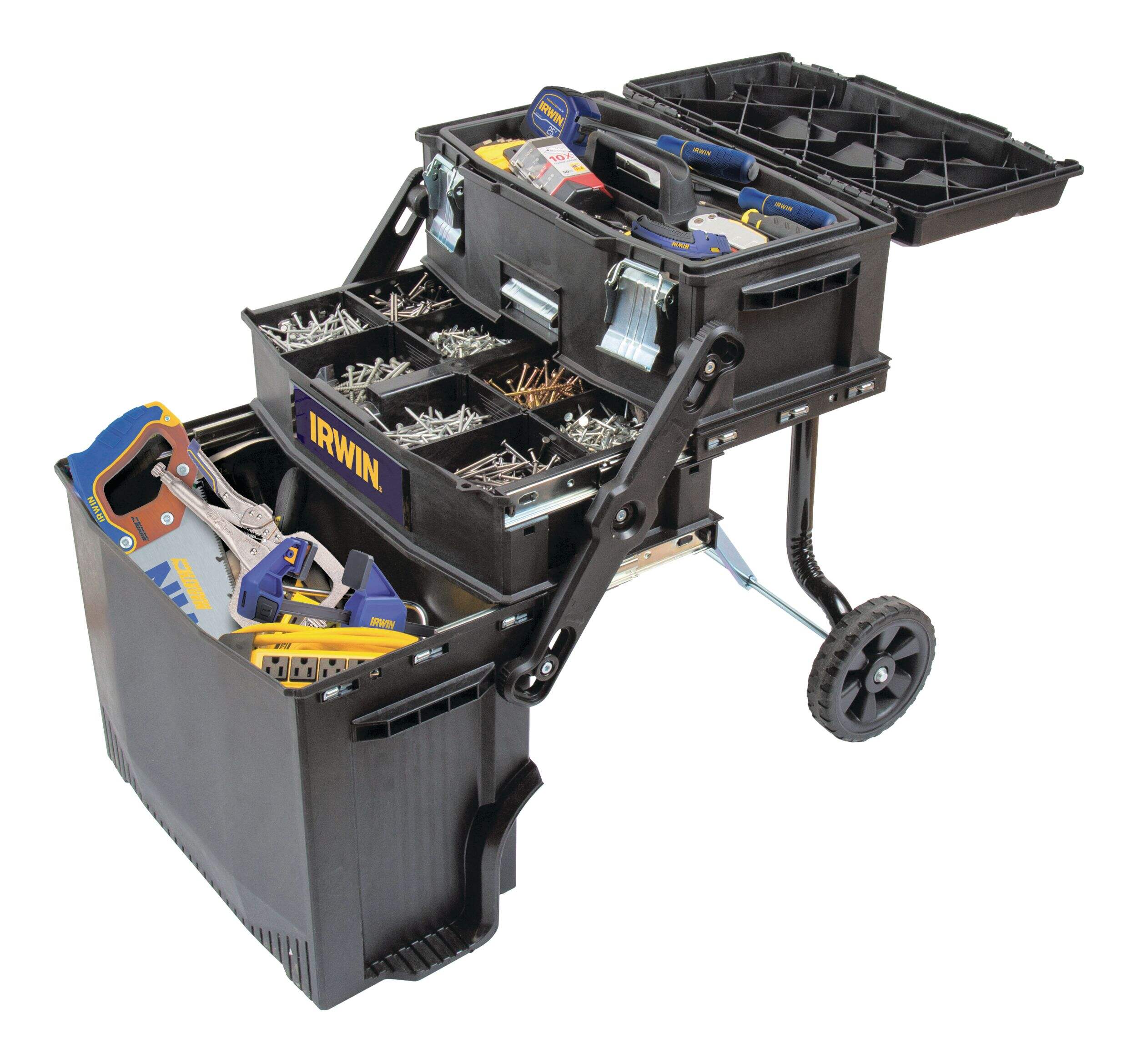 The Irwin Multi-Level Toolbox is the ultimate storage solution for jobsite organization. This 4-in-1 toolbox offers versatile compartments to keep your tools, accessories, and materials neatly organized and easily accessible. Designed for portability, it features a sturdy base and a comfortable handle, making it effortless to transport from one location to another. Whether you're a professional or a DIY enthusiast, this toolbox ensures you have everything you need at your fingertips, enhancing efficiency on the job.
