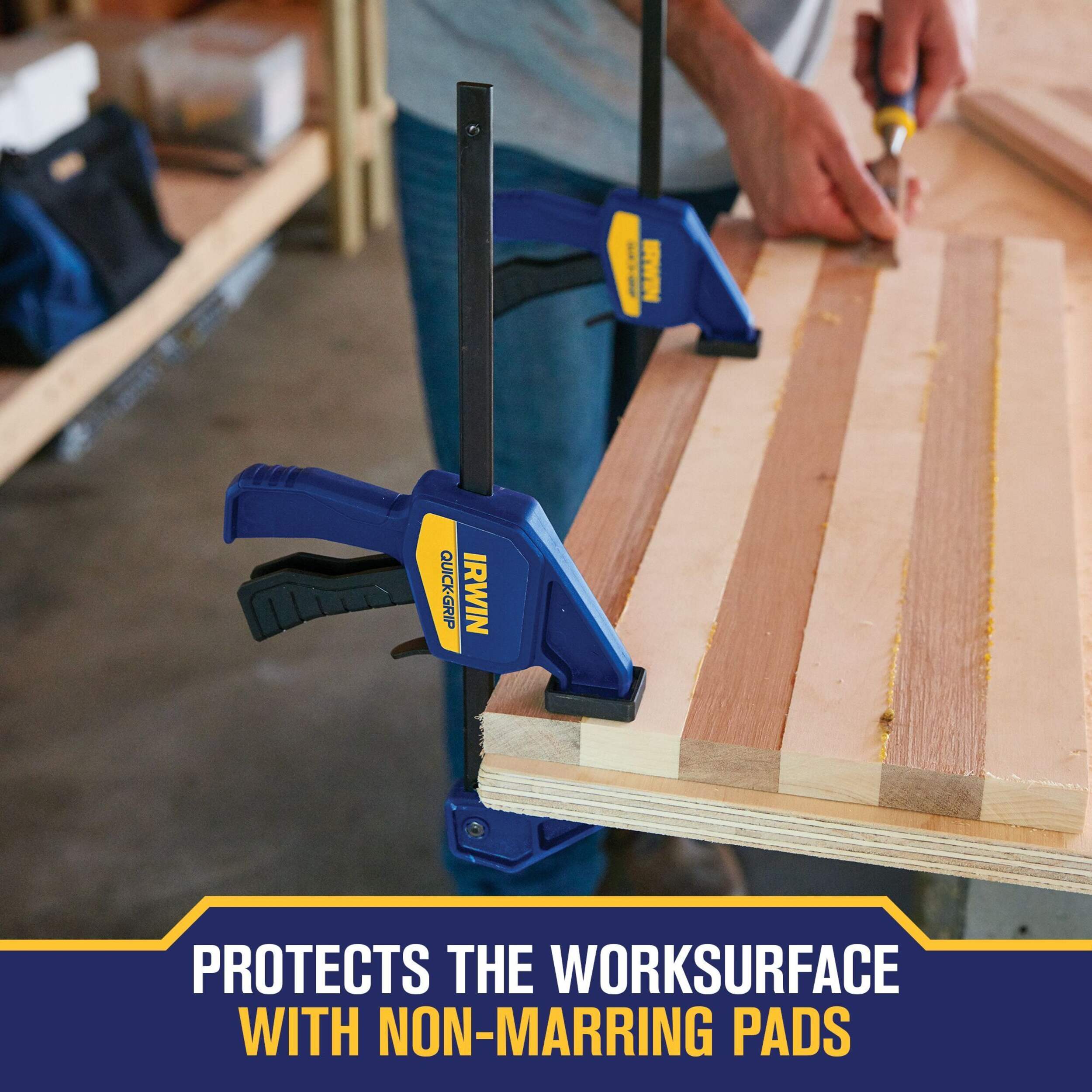 The Irwin Quick Grip Clamp Set is perfect for handling small workpieces and working in tight spaces. With four included clamps, this set provides the versatility and convenience you need to complete household tasks. Thanks to their durable resin construction and hardened steel bars, these clamps represent an essential addition to any workshop.