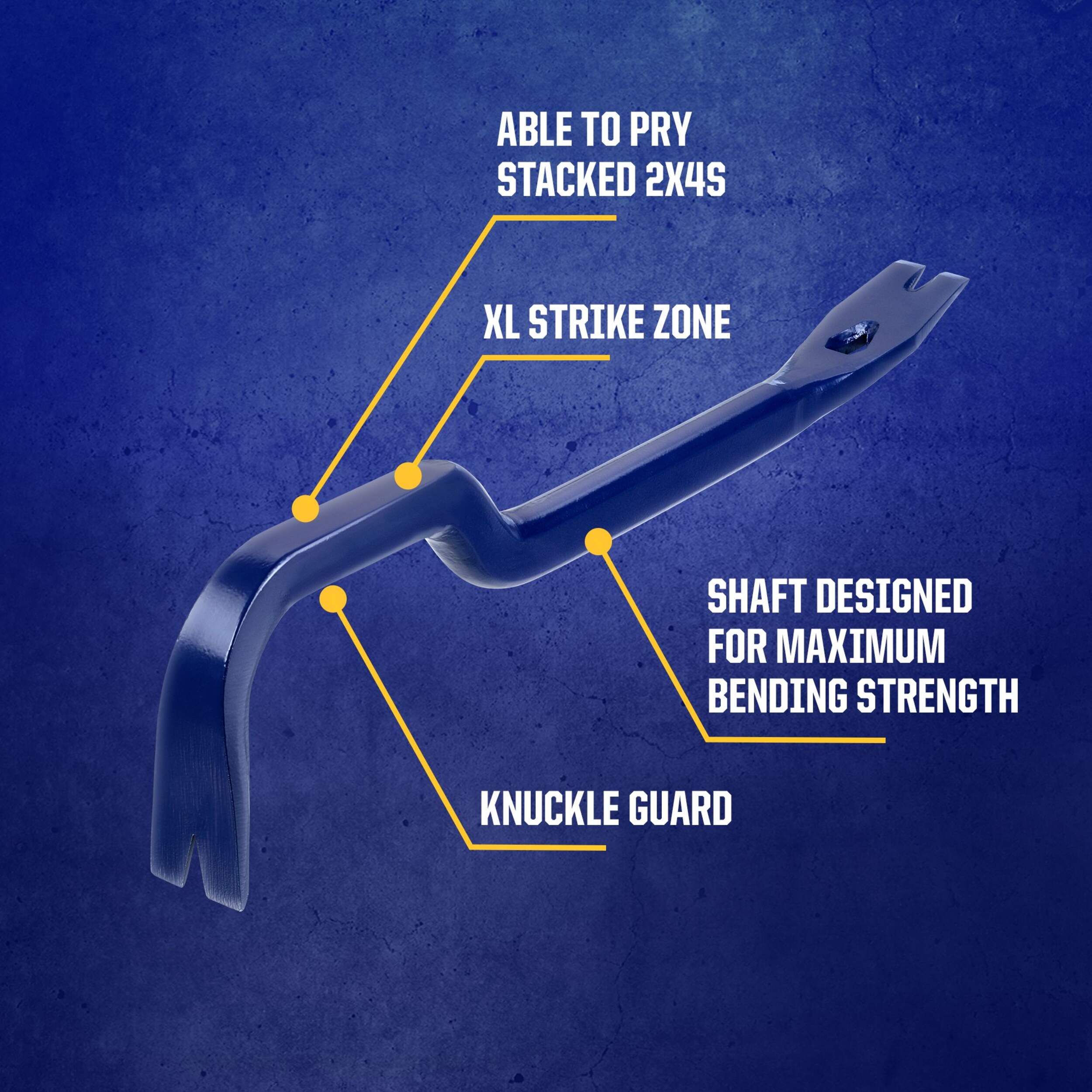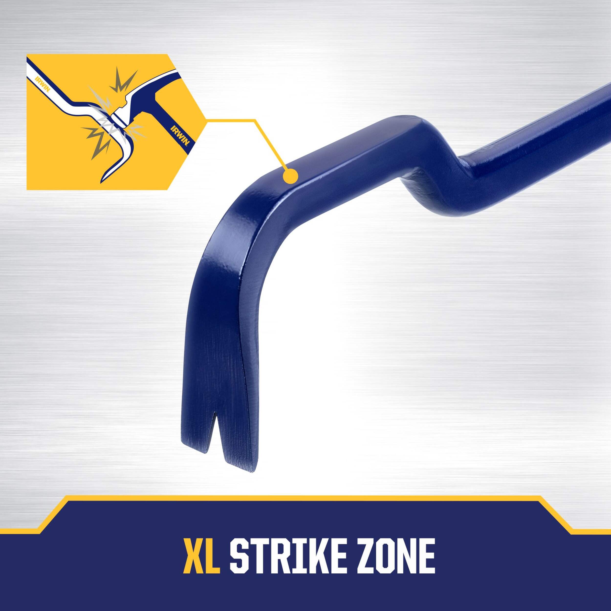 The Irwin Wrecking Pry Bar features forgings of heat-treated high-carbon steel for durability and strength. Its extra-large strike zone provides better access to tight spaces for convenience. This versatile 4-in-1 tool pries, rips, bends boards and strikes to make construction tasks easier. Sharp beveled ends easily get under materials while the tri-lobe cross section improves comfort and control.
