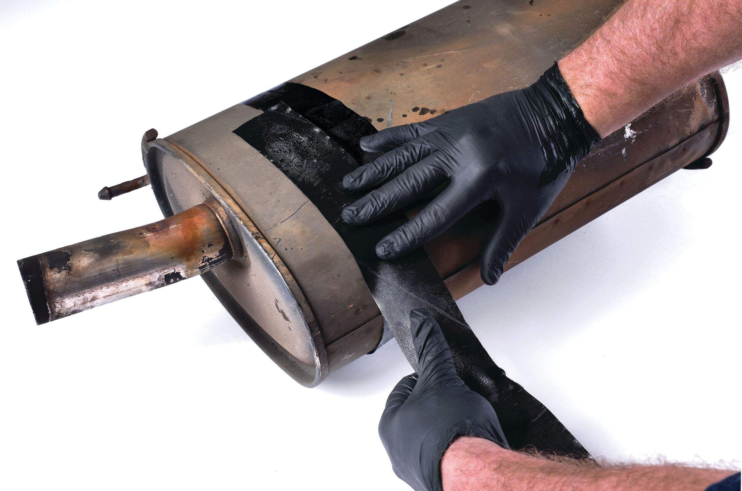 Comes with aluminum tape for long-term patch repair on mufflers and tailpipes