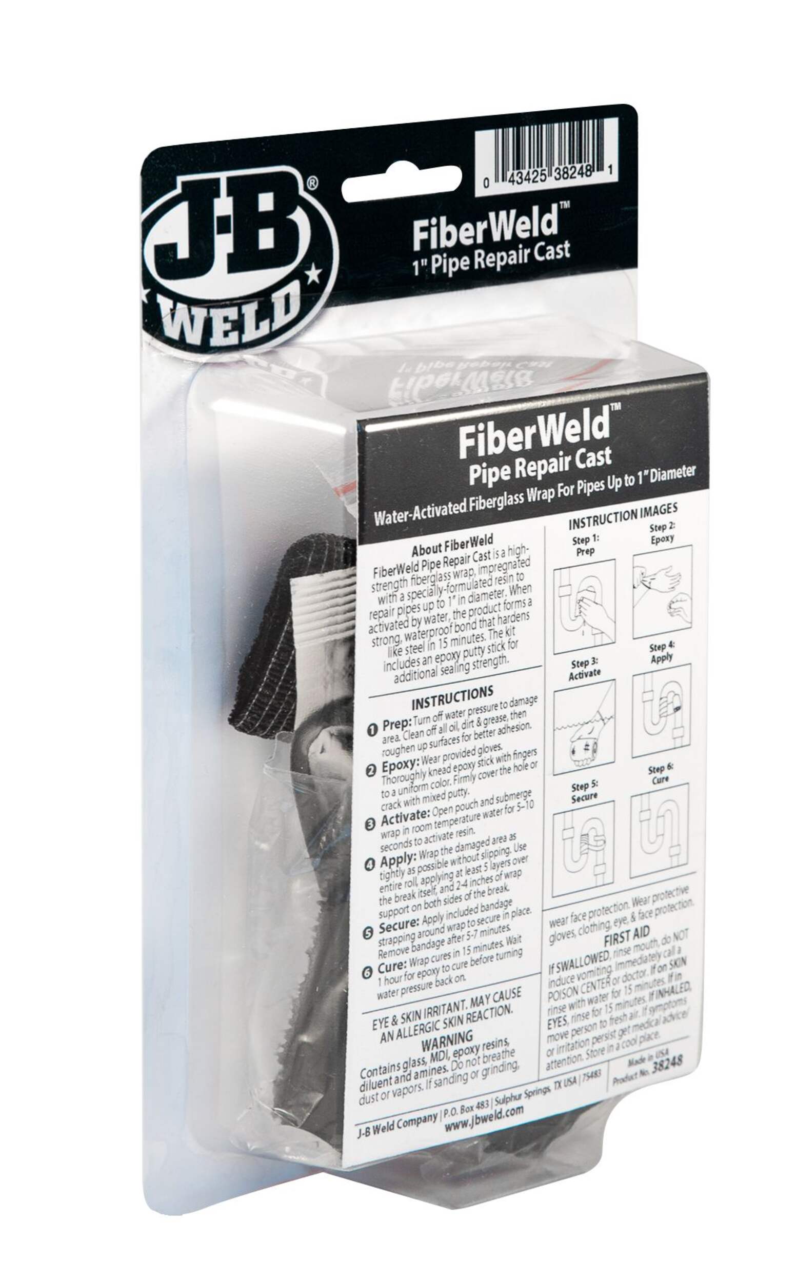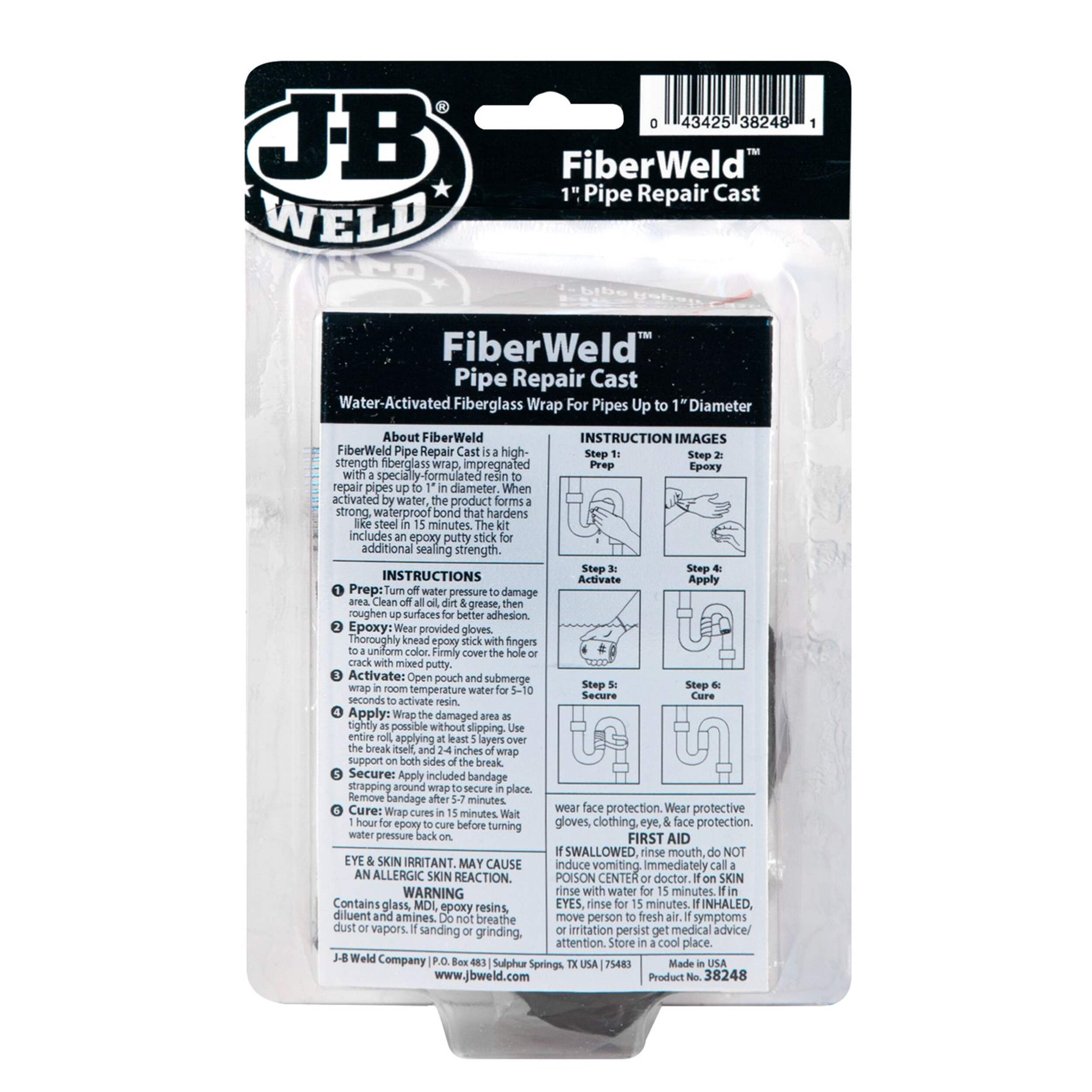 J-B Weld FiberWeld™ 1" (2.5 cm) Pipe Repair Cast Wrap adheres to pipes up to 1" (2.5 cm) in diameter