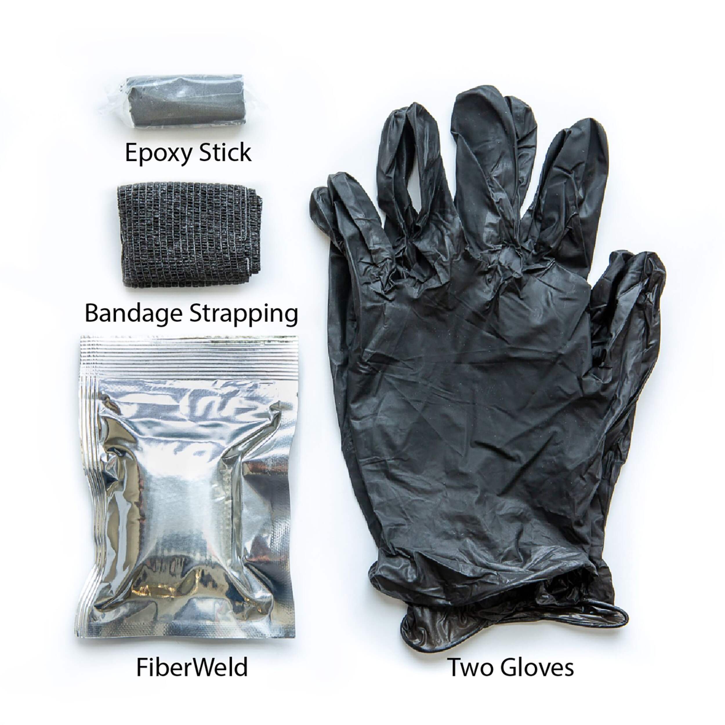 Kit includes one 2" x 48" (5 x 122 cm) wrap, gloves, 1 oz (29.6 mL) epoxy putty, and securing bandage