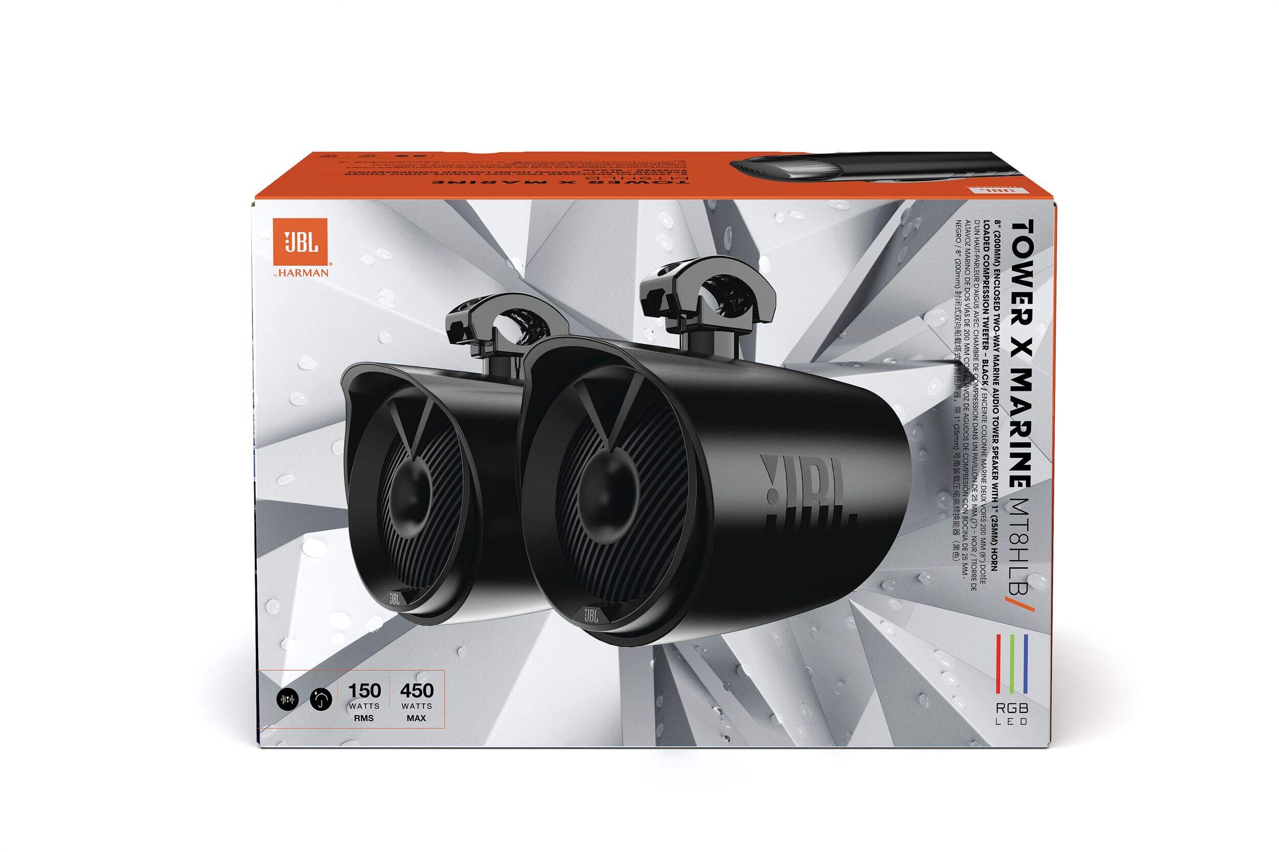 The JBL Tower X Marine Speaker system is ready to take your next outdoor adventure to the next level. The fully marinized speakers deliver a JBL pro sound experience complete with RGB lighting to bring it to life. Their rigid Polypropylene long-throw woofer cones deliver great bass to ensure you never miss a beat, coupled with a titanium horn-loaded compression tweeter and fidelity for accurate reproduction. The woofer and tweeter assembly incorporates a patent pending design that helps to project the sound over the stern of the boat, directly to the wave rider's sweet spot, while providing great sound inside the boat.