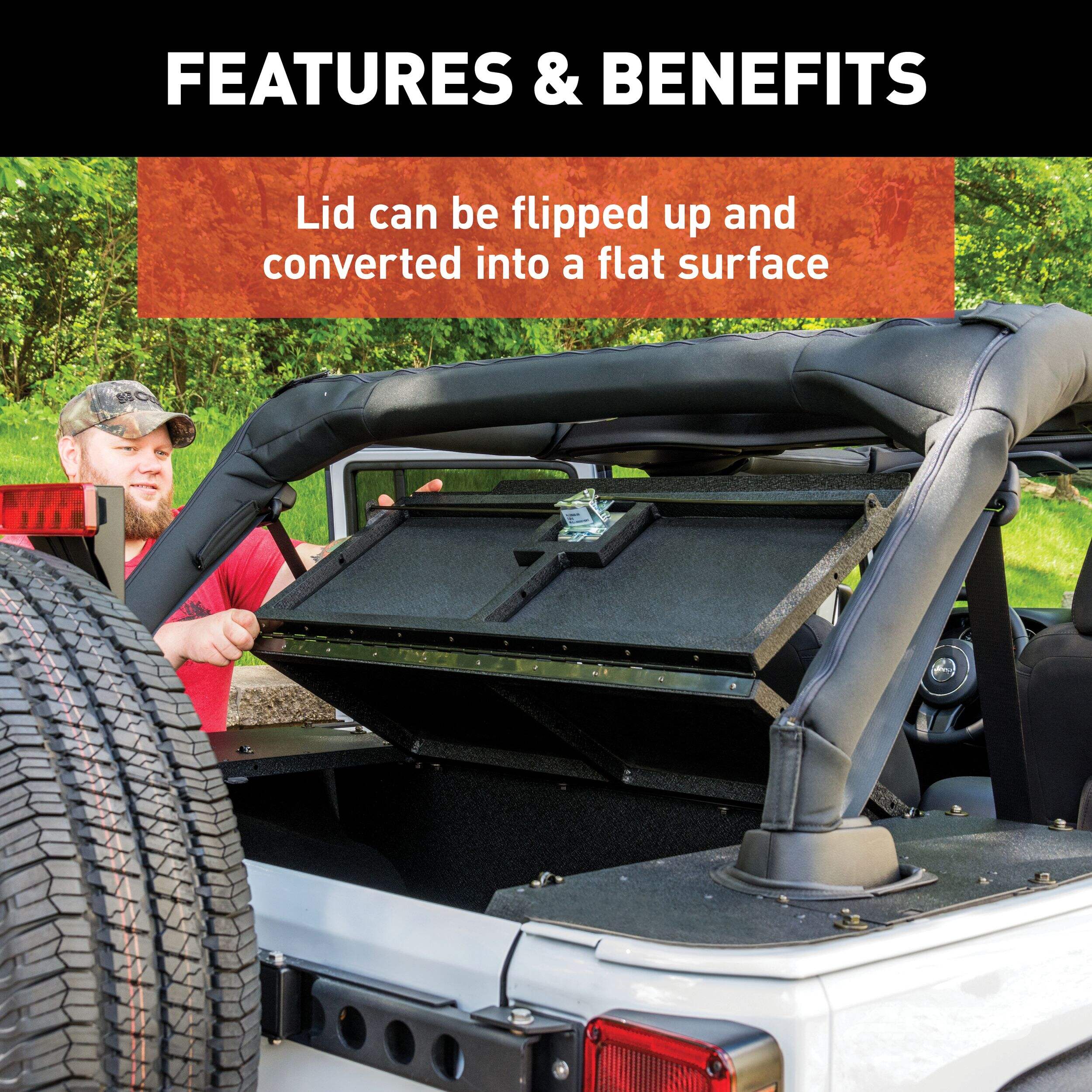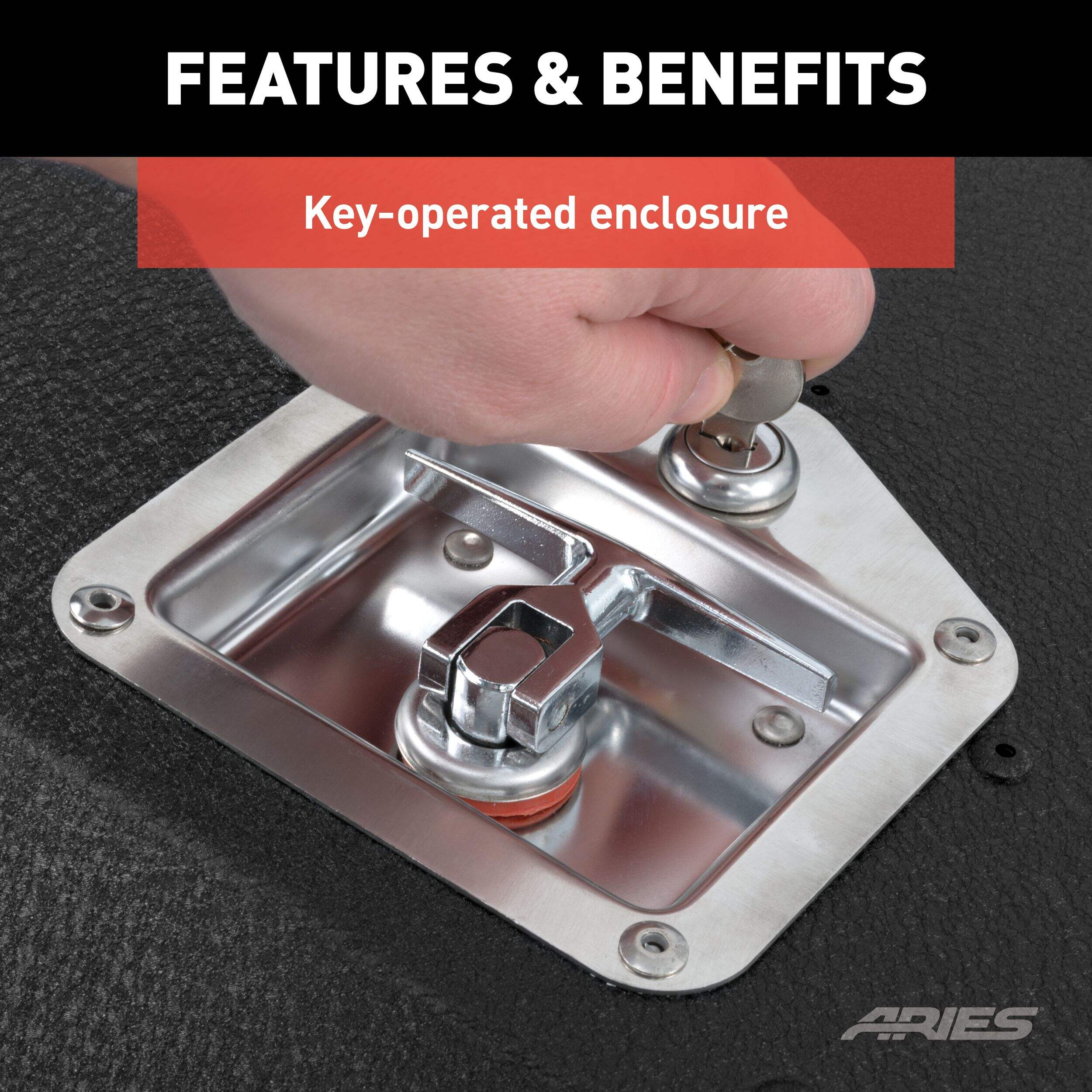 The ARIES Jeep JK Unlimited Security Cargo Lid Center Section provides a secure storage solution for your 4-door Jeep. Constructed from hardened T6 aluminum, it is strong, lightweight, and rust-free, and easily hides minor scratches and grime.
